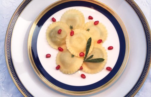 I ravioli per il giorno di Natale sono impreziositi da chicchi di melagrana
