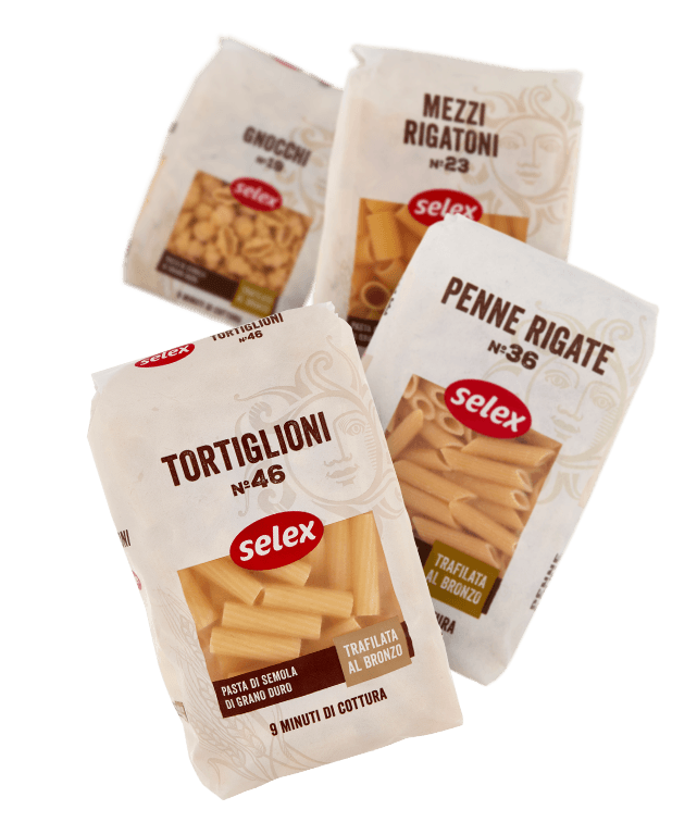 Con un assortimento di formati pensati per ogni ricetta – dagli spaghetti ai fusilli, dai tortiglioni alle conchiglie – la pasta Selex diventa protagonista di ogni tavola. Perfetta con i grandi classici della cucina italiana, dal ragù al pesto, sorprendente anche con i condimenti più semplici.