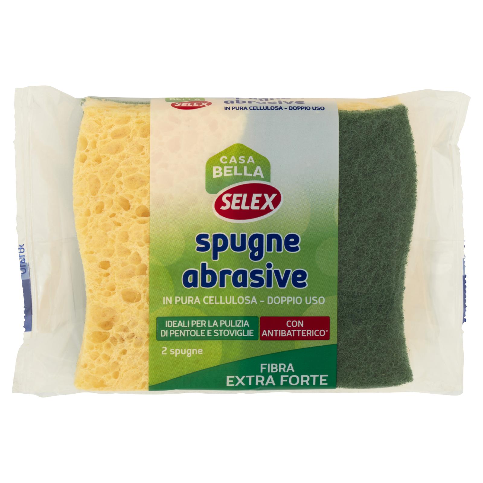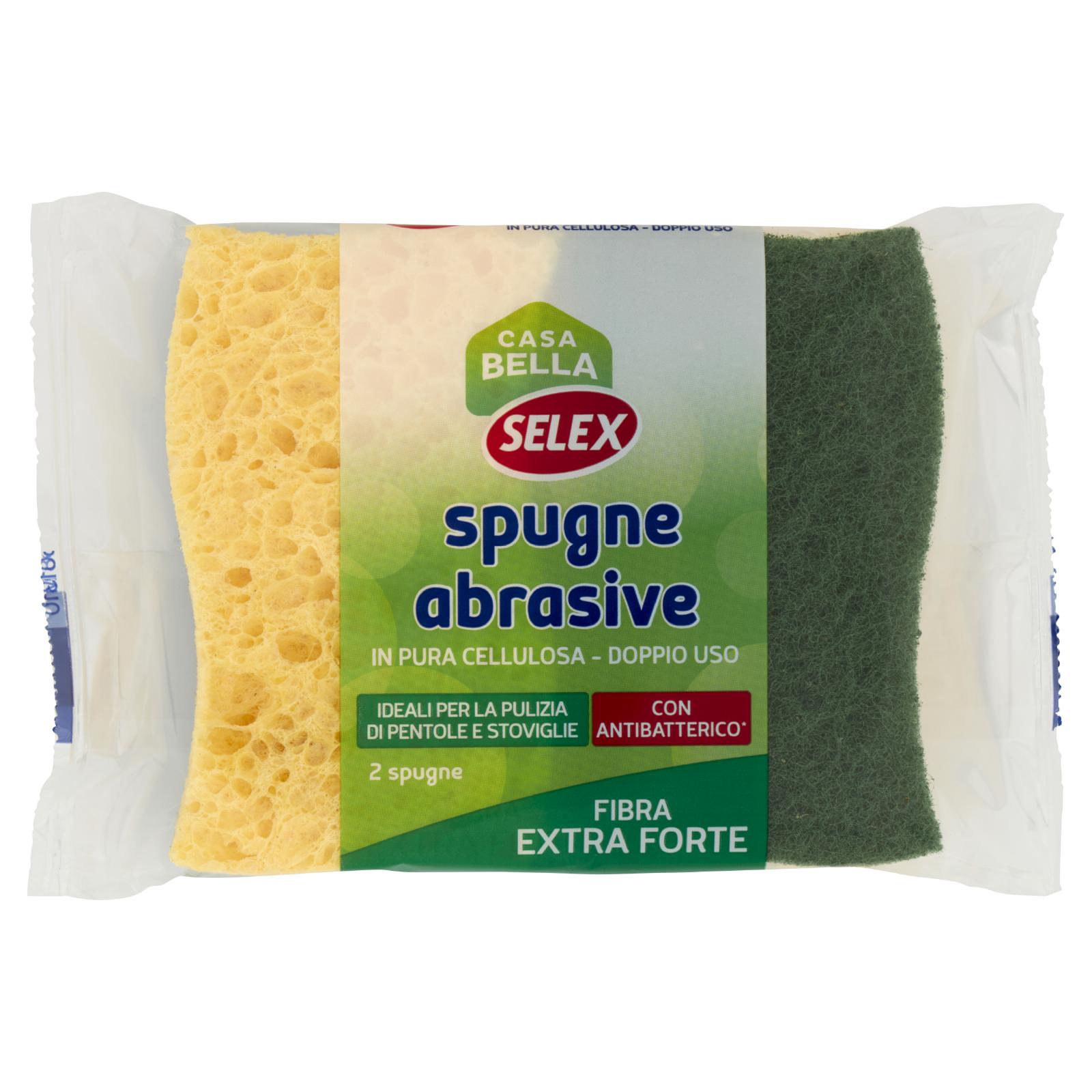 Selex Casa Bella Spugne Abrasive in Pura Cellulosa Doppio Uso con Antibatterico 2 pezzi