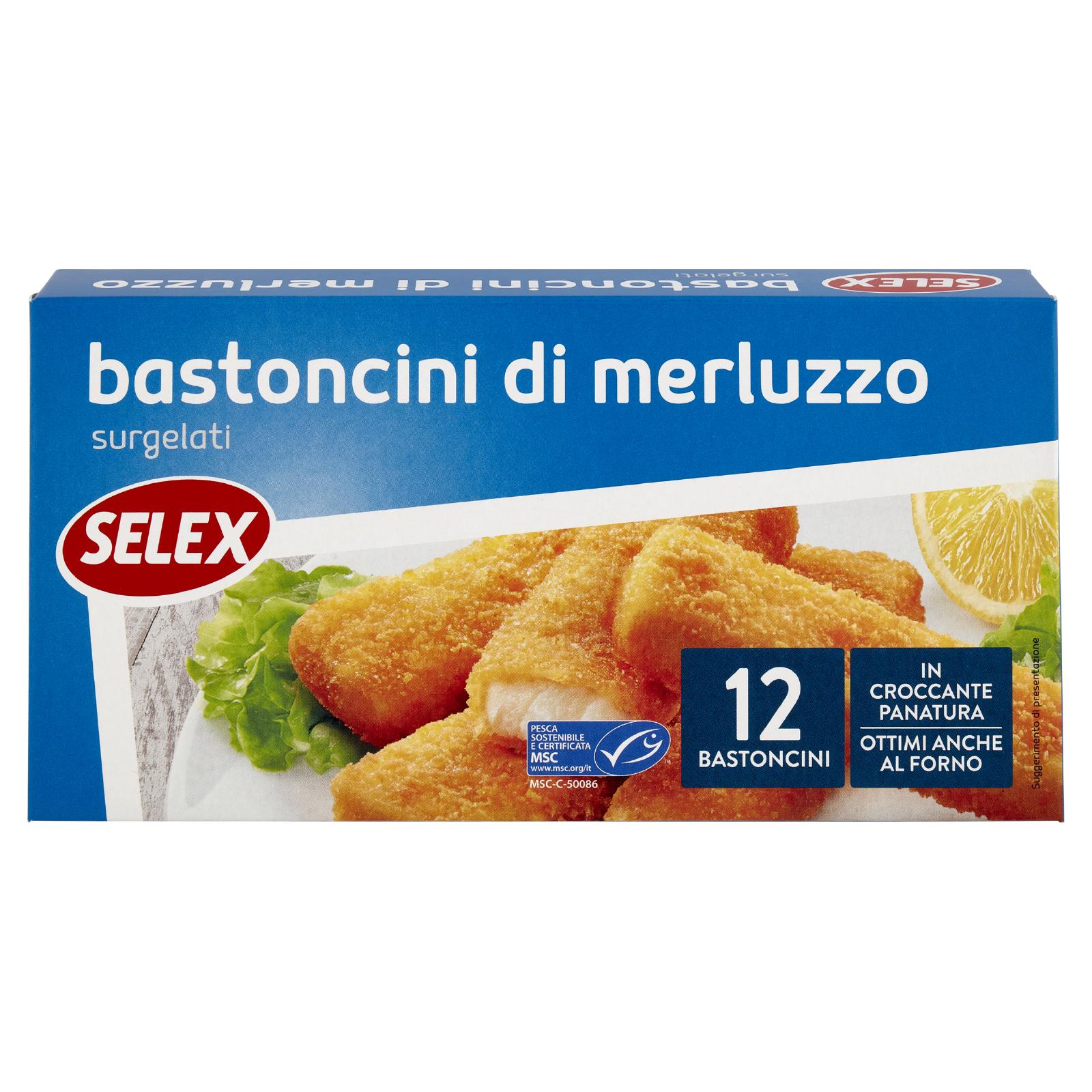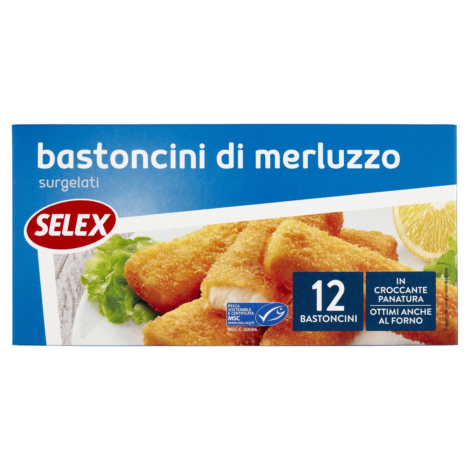 - Bastoncini di filetti di merluzzo da pesca sostenibile e certificata MSC, panati, prefritti e surgelati