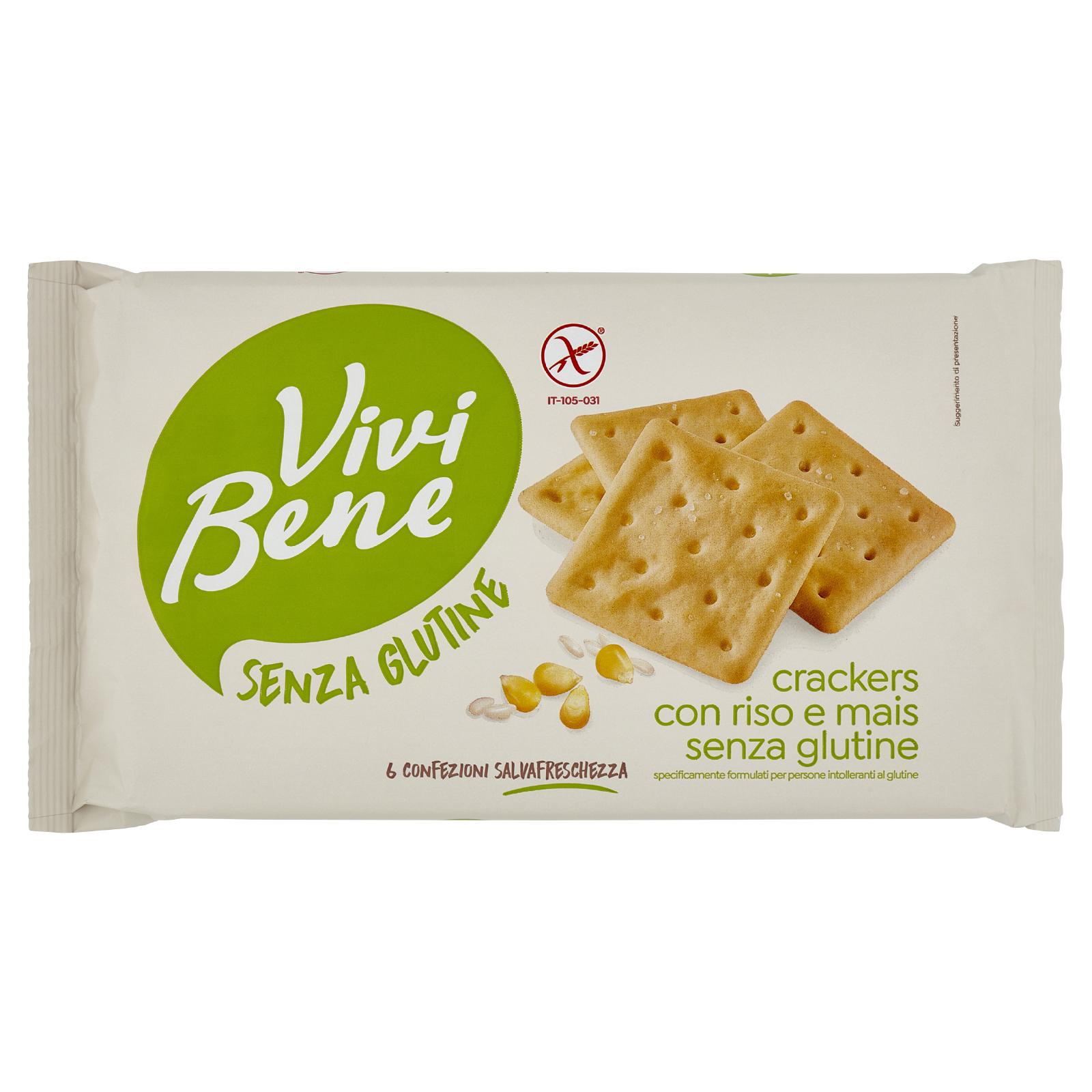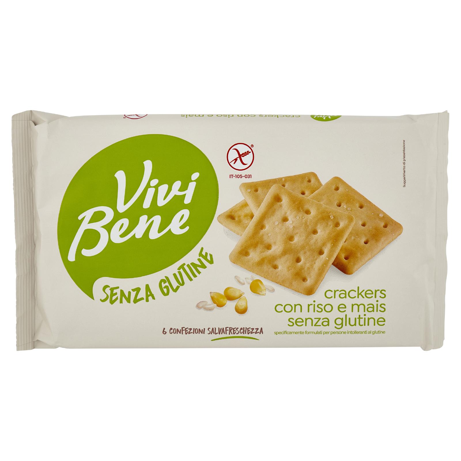 - Crackers con riso e mais senza glutine specificamente formulati per persone intolleranti al glutine
