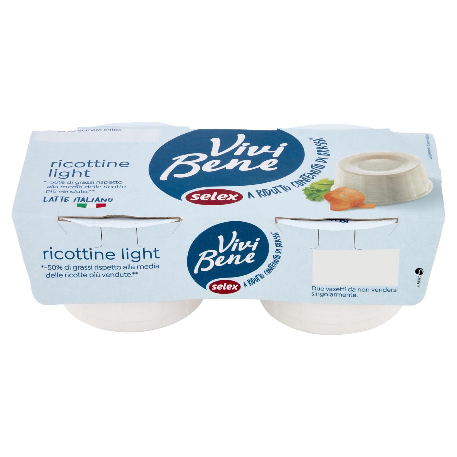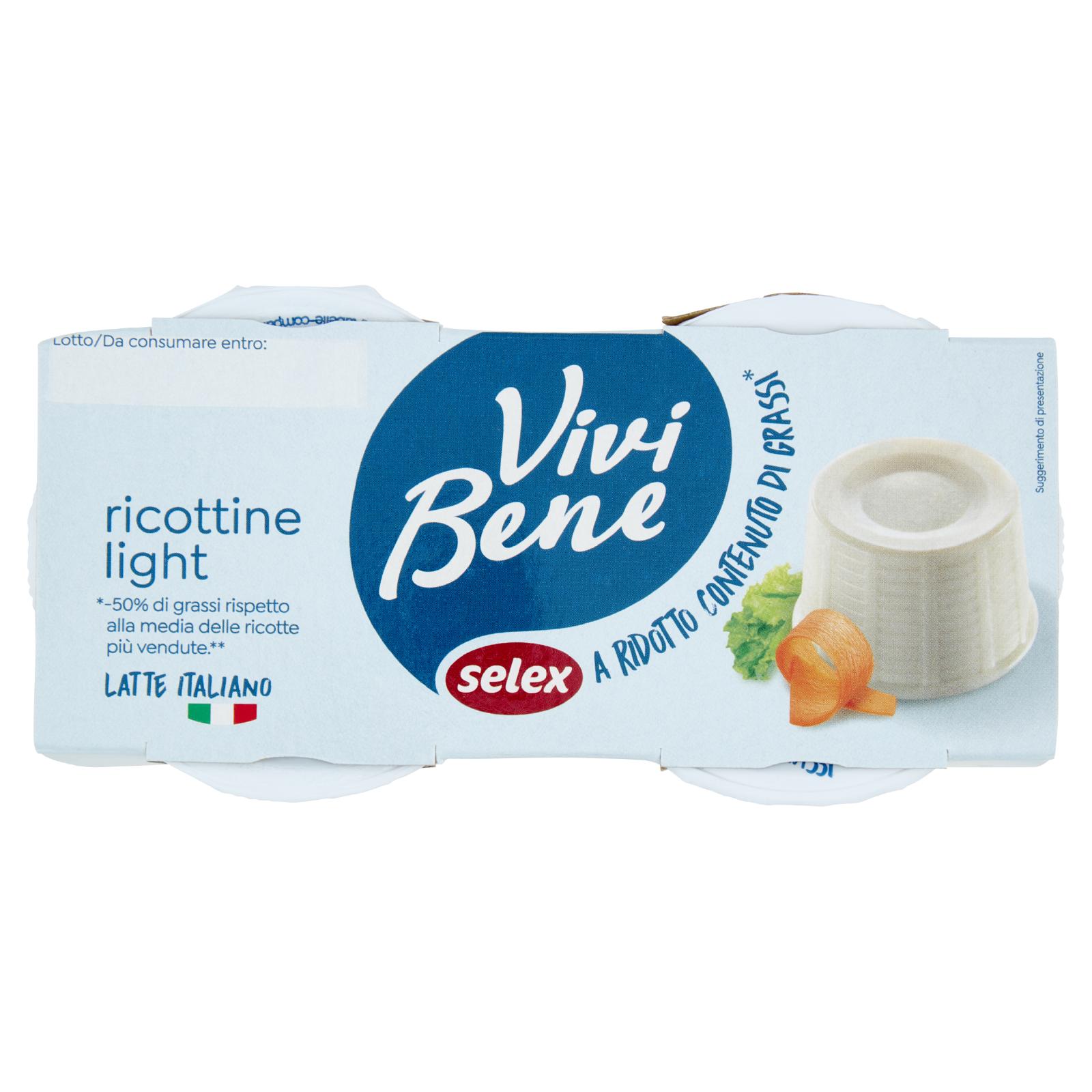 - Ricotta light a ridotto contenuto di grassi* *-50% di grassi rispetto alla media delle ricotte più vendute** **(Fonte Nielsen. Per maggiori informazioni: www.selexgc.it/it/tabelle-comparative)