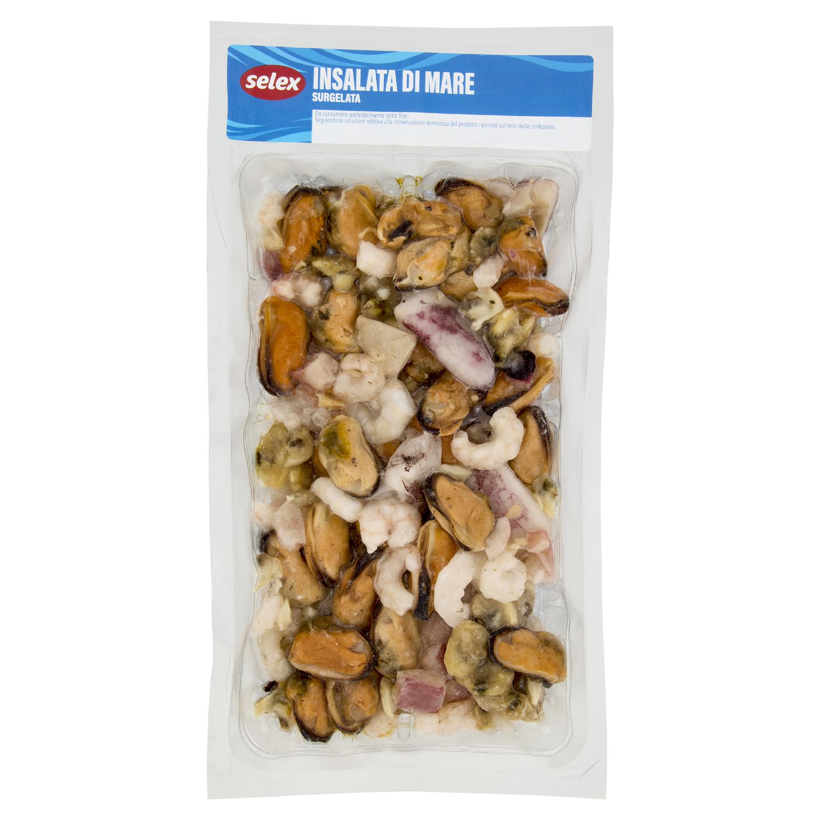 - Molluschi 85% (cozze precotte, calamari, vongole precotte, polpo precotto) Gamberi sgusciati e scottati 15% (gamberi, acqua, sale) (contiene solfiti) Può contenere pesce