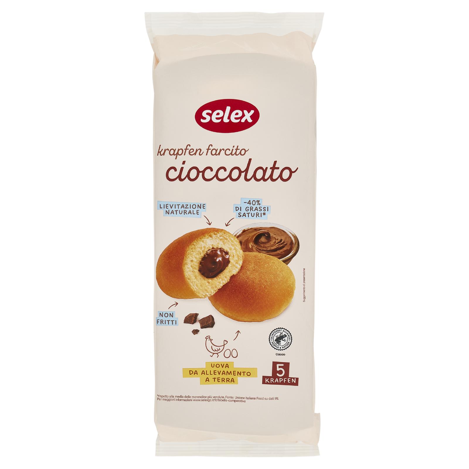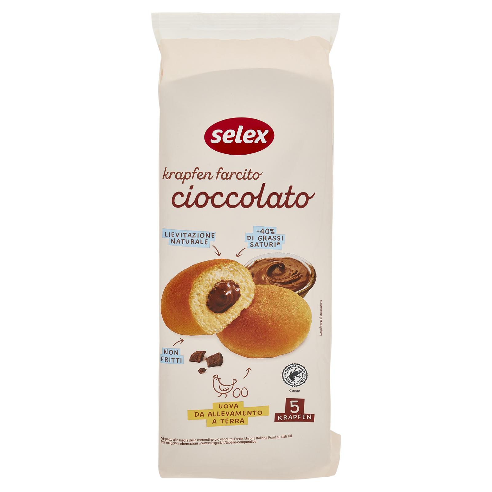 - Farina di grano tenero Crema al cioccolato 20% [sciroppo di glucosio, zucchero, acqua, grassi ed oli vegetali di palma e girasole, cioccolato 8% (zucchero, cacao**, burro di cacao**) corrispondente al 1,6% sul prodotto finito, latte scremato in polvere, nocciole in pasta, aromi, gelificante: pectine, conservante: potassio sorbato, sale] Acqua Uova 8% Zucchero Sciroppo di zucchero invertito Olio di semi di girasole Margarina (grassi e oli vegetali da palma e girasole, acqua, sale, aromi, correttore di acidità: acido citrico) Lievito naturale (farina di grano tenero, acqua) Fibra alimentare (grano) Emulsionanti: mono- e digliceridi degli acidi grassi, stearoil-2-lattilato di sodio Sale Aromi Può contenere altra frutta a guscio, soia e senape **Certificato Rainforest Alliance. ra.org