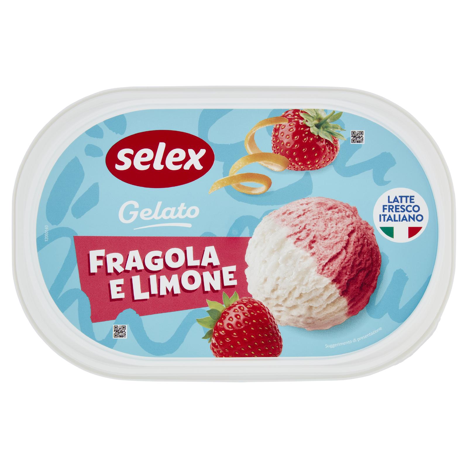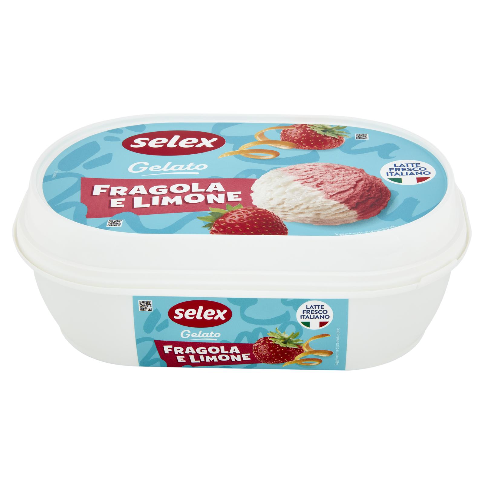 - Gelato al limone 50% (latte scremato fresco pastorizzato italiano 24,5% di cui 12,2% nel prodotto finito, acqua, zucchero, succo di limone da concentrato 17,5% di cui 8,7% nel prodotto finito, sciroppo di glucosio, destrosio, olio di cocco, latte scremato in polvere, emulsionanti: mono- e digliceridi degli acidi grassi; addensanti: farina di semi di carrube, pectina; aroma naturale di limone) Gelato alla fragola 48% (latte scremato fresco pastorizzato italiano 22% di cui 10,6% nel prodotto finito, purea di fragole da concentrato 21,8% di cui 10,4% nel prodotto finito, zucchero, acqua, sciroppo di glucosio, destrosio, olio di cocco, succo di limone da concentrato, latte scremato in polvere, emulsionanti: mono-e digliceridi degli acidi grassi; addensanti: farina di semi di carrube, pectina; concentrato vegetale di barbabietole rosse, aroma, acidificanti: acido citrico), fragole semicandite 2% (fragole 62% di cui 1,2% nel prodotto finito, sciroppo di glucosio-fruttosio, zucchero, acidificanti: acido citrico; addensante: farina di semi di carrube, conservante: sorbato di potassio) Può contenere frutta a guscio e uova Senza glutine