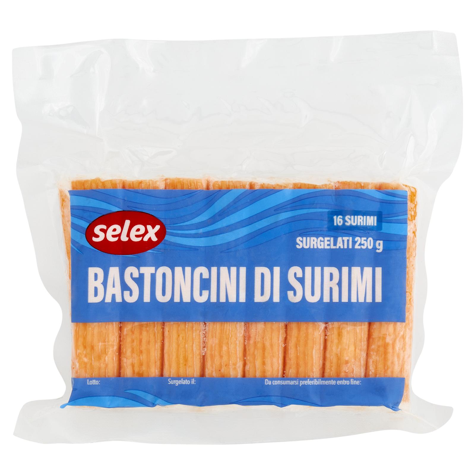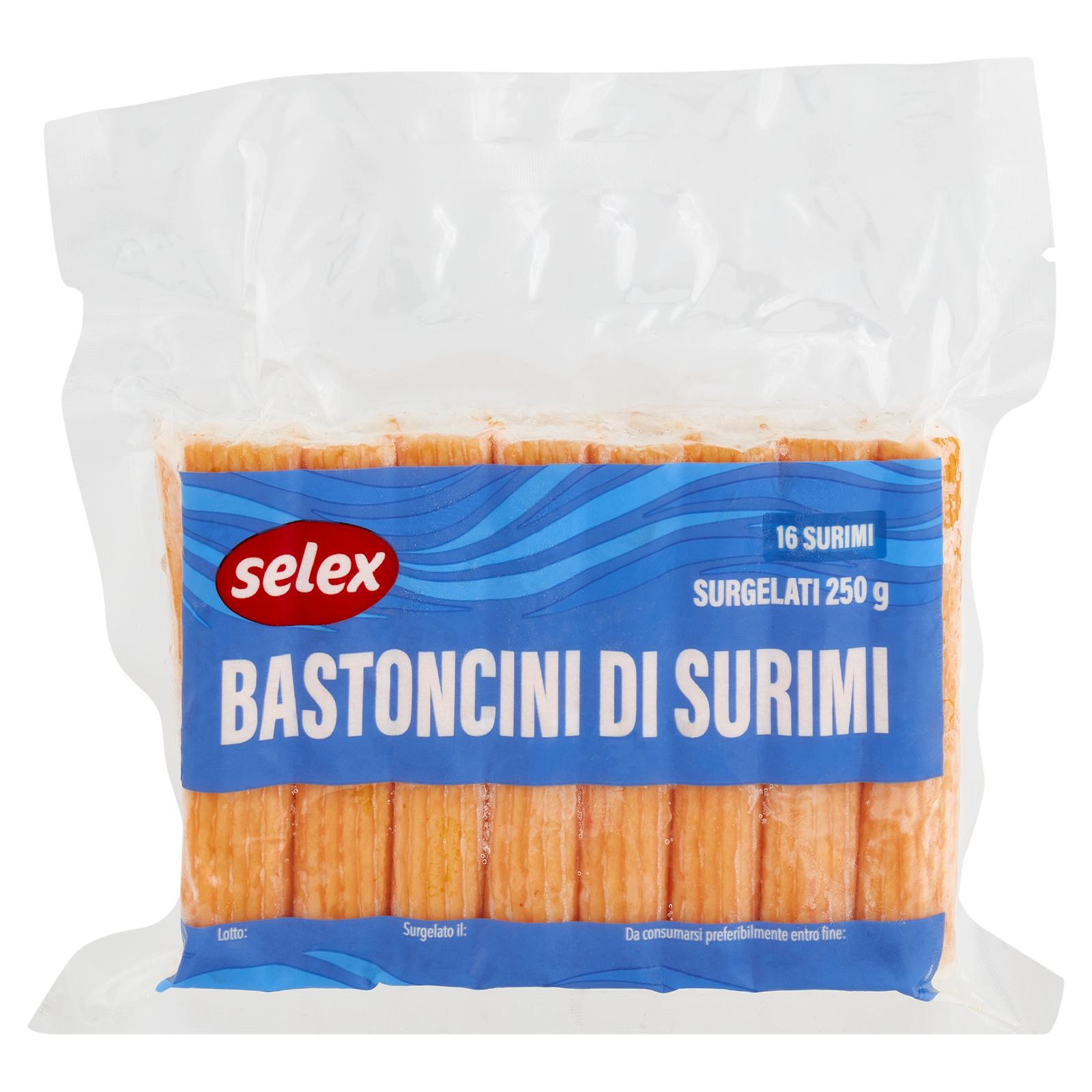 - Surimi 32% (polpa di pesce 96,8% pari al 31% nel prodotto finito, zucchero, stabilizzanti: polifosfati) Acqua Amido di mais Amido di frumento Proteine di soia Estratto di granchio (contiene crostacei) Sale Olio di soia raffinato Zucchero Albume d'uovo Esaltatore di sapidità: glutammato monosodico, aroma naturale di granchio (contiene crostacei) Coloranti: acido carminico Estratto di paprica
