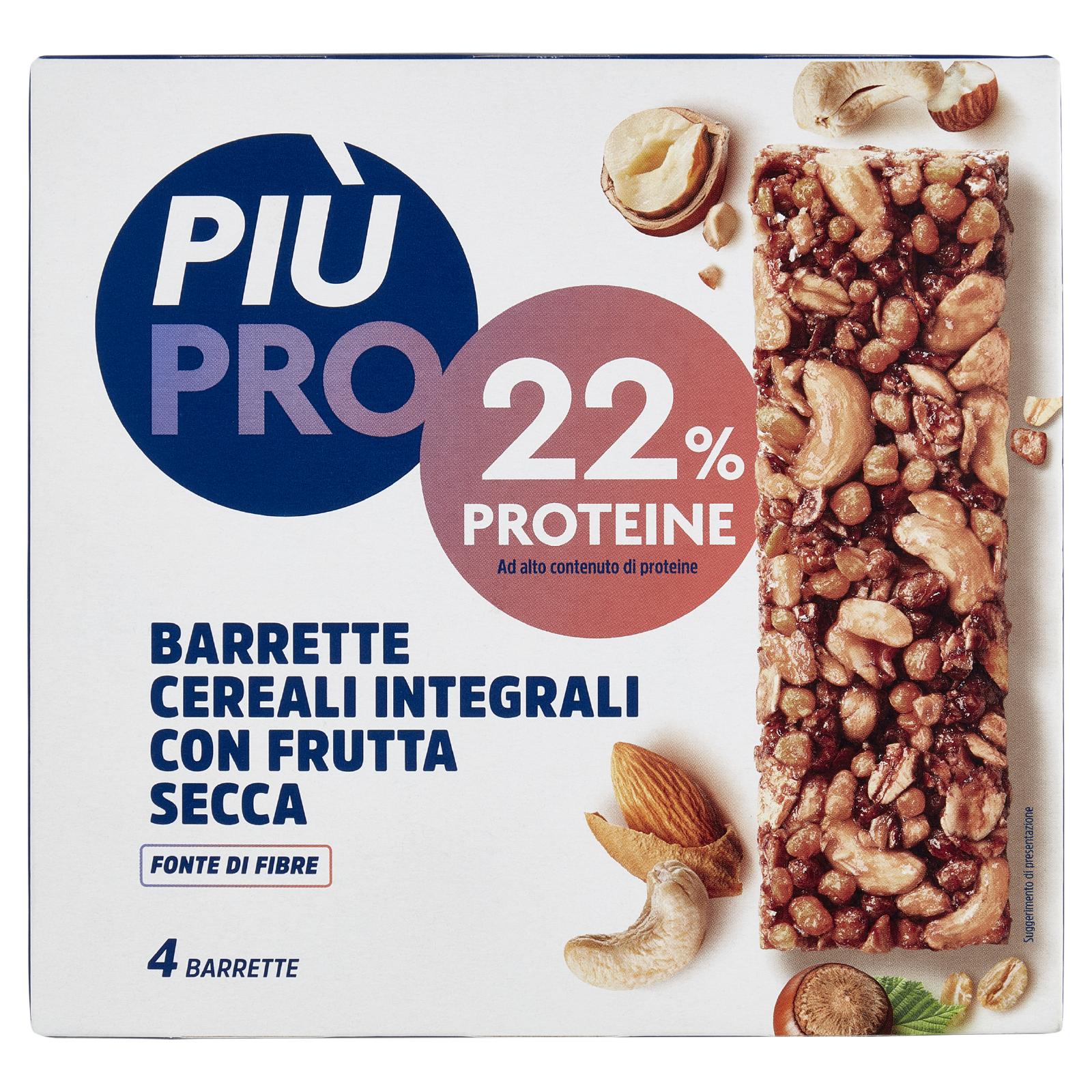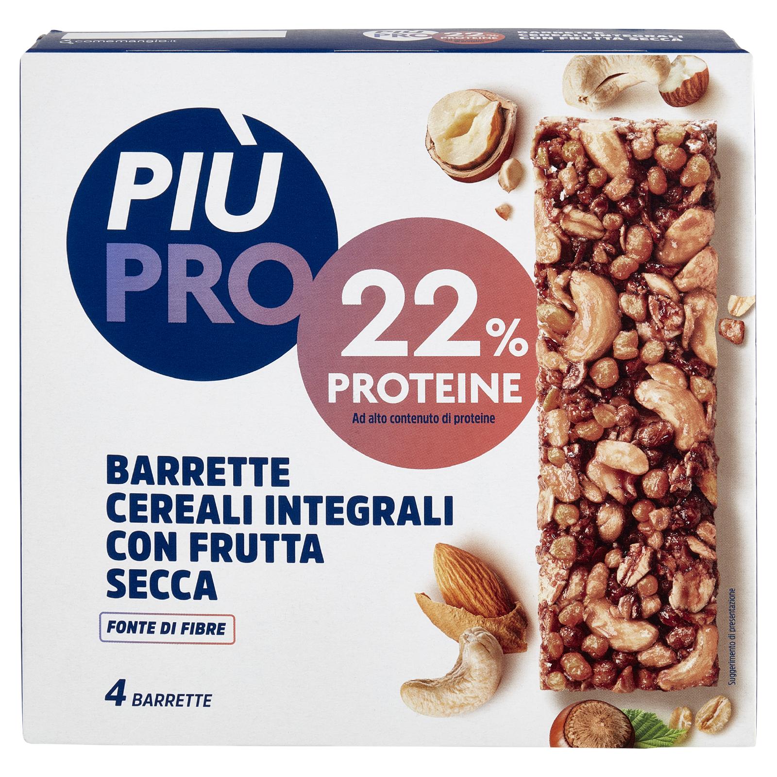 - Cereali integrali 20% (fiocchi di grano farro integrale 8% nel prodotto finito, fiocchi di avena integrale 12% nel prodotto finito) Sciroppo di riso Arachidi 17% Estruso proteico a base di soia (proteine di soia, farina di riso) Frutta secca 13,5% (mandorle, nocciole, anacardi) Miele Datteri Latte condensato zuccherato (latte, zucchero) Cacao magro in polvere 1,5% Può contenere uova, senape ed altra frutta a guscio