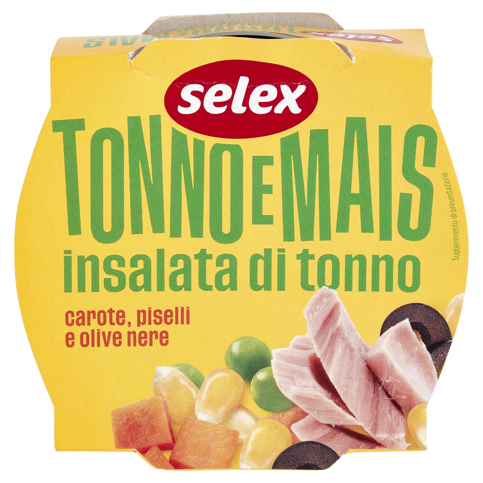 Vegetali 56% (mais 52% pari al 29% nel prodotto finito, carote 21% pari al 12% nel prodotto finito, piselli 20% pari all' 11% nel prodotto finito, olive nere 7% pari al 4% nel prodotto finito)
