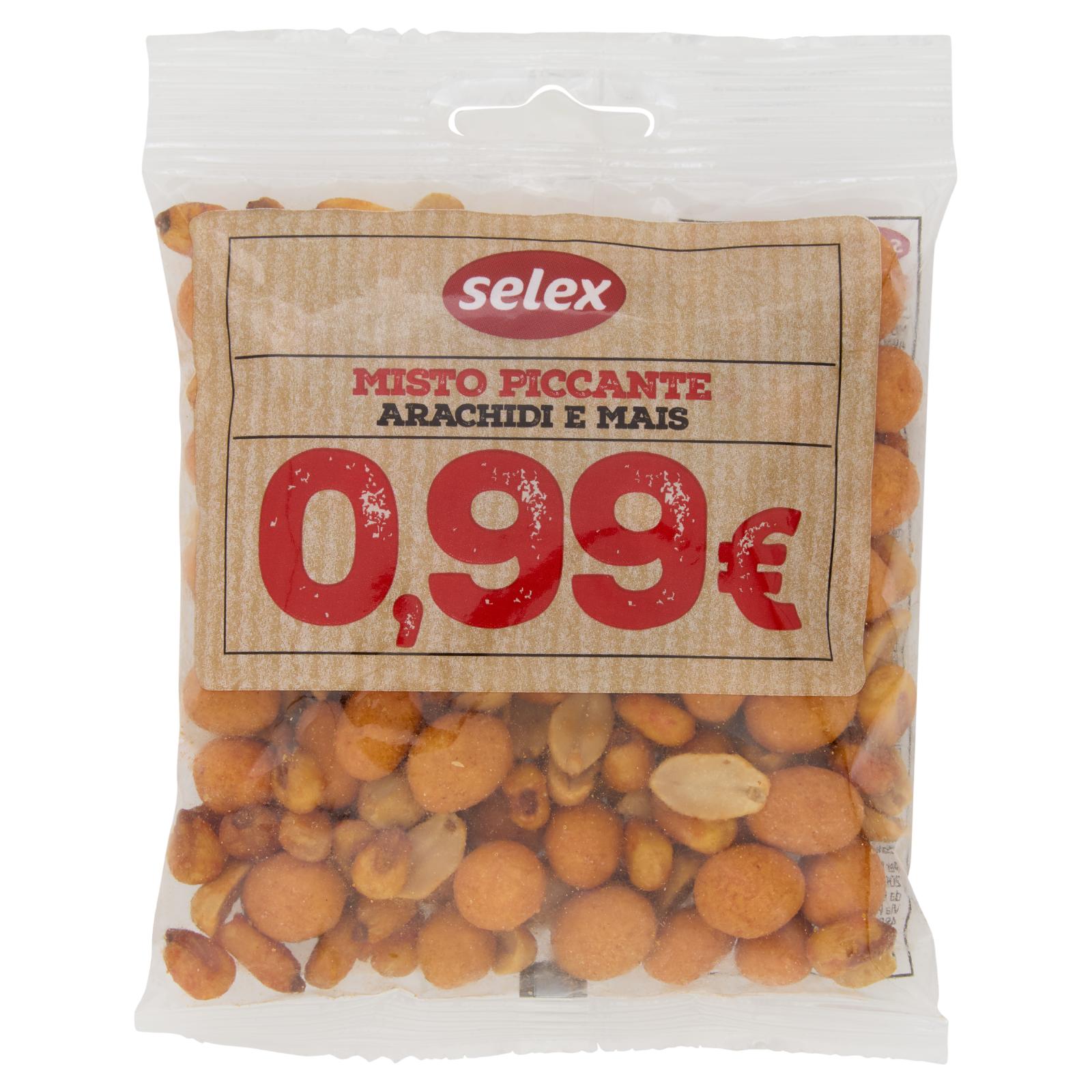 - Arachidi fritte salate (arachidi, olio di arachide, sale) Arachidi ricoperte piccanti (arachidi, amido di mais, amido modificato, olio di semi di girasole, maltodestrine, destrosio, sale, zucchero, farina di frumento, paprica 0,2% sul totale, esaltatori di sapidità: E621, E627, E631; correttore di acidità: E330, coloranti: E160b, estratto di paprica; aromi) Mais fritto piccante [mais, olio di semi di girasole, insaporitore piccante 0,7% sul totale (sale, maltodestrine, esaltatore di sapidità: E621; aromi, spezie, colorante: E160c), sale] Può contenere soia, latte, frutta a guscio e senape