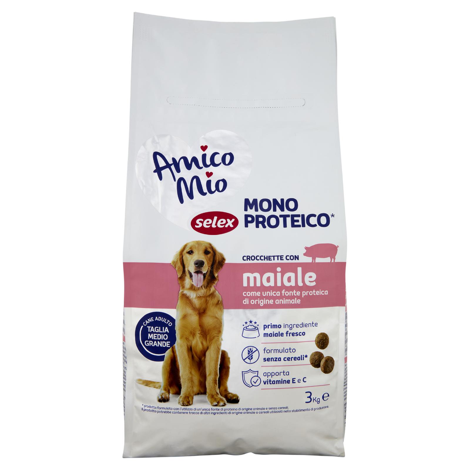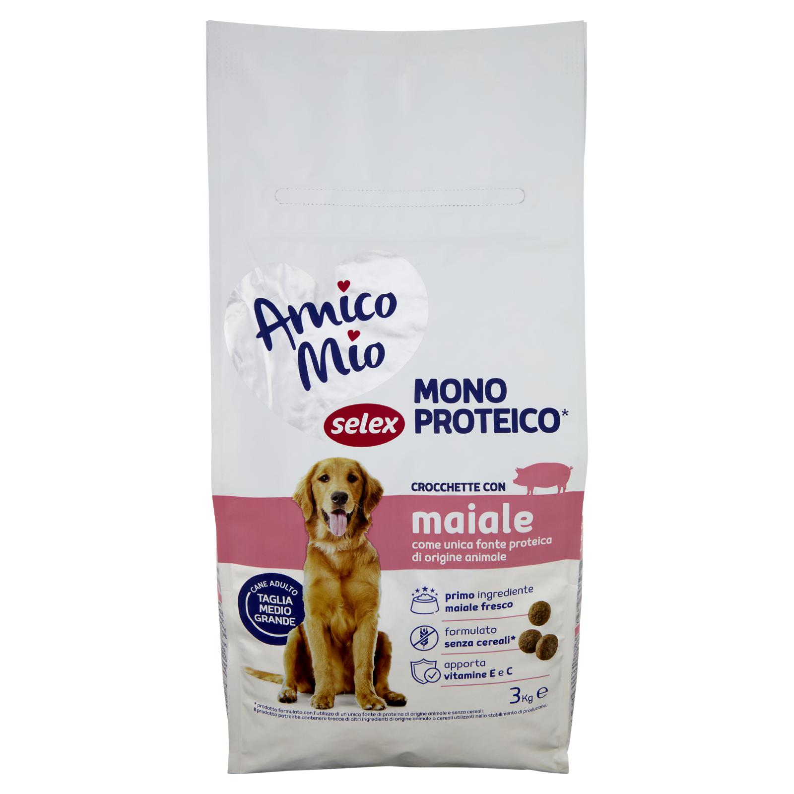 - Amico Mio Selex Mono* proteico è formulato con un'unica fonte di proteine animali e senza l'utilizo di cereali. * prodotto formulato con l'utilizzo di un'unica fonte di proteina di origine animale e senza cereali. Il prodotto potrebbe contenere tracce di altri ingredienti di origine animale o cereali utilizzati nello stabilimento di produzione.