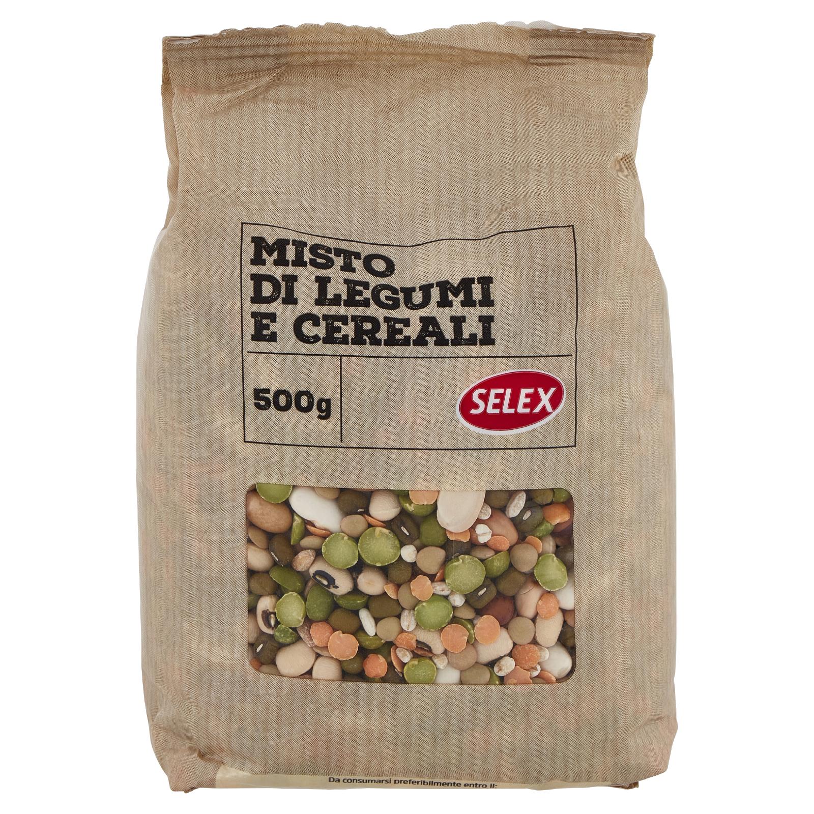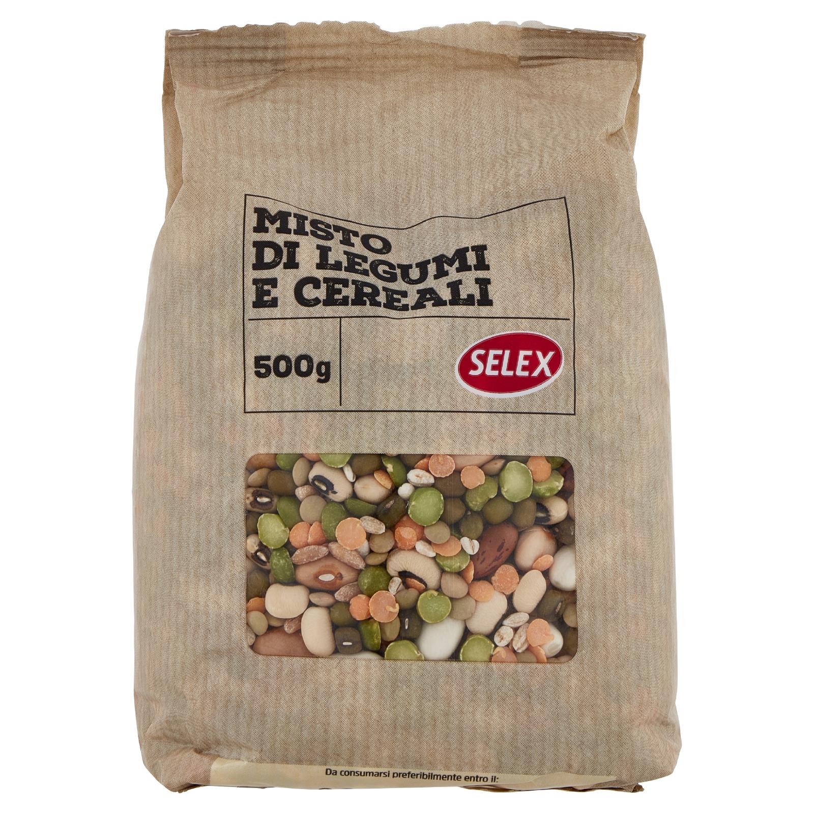Legumi 85%: fagioli (borlotti, cannellini, bruni, dall'occhio, neri, rossi), piselli spezzati, lenticchie, lenticchie rosse decorticate, adzuki verdi Cereali 15%: orzo perlato, grano farro perlato