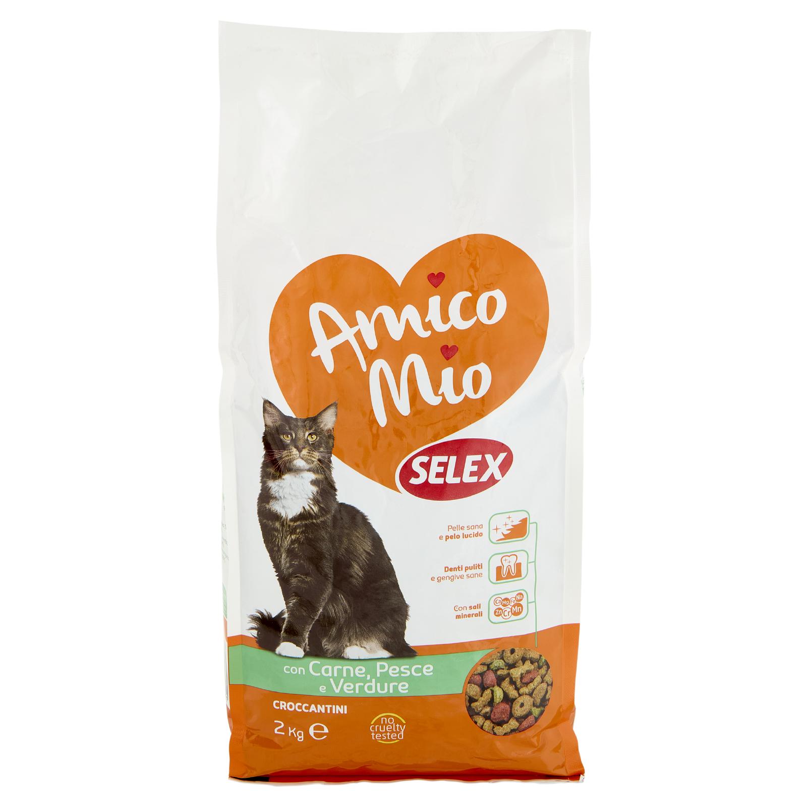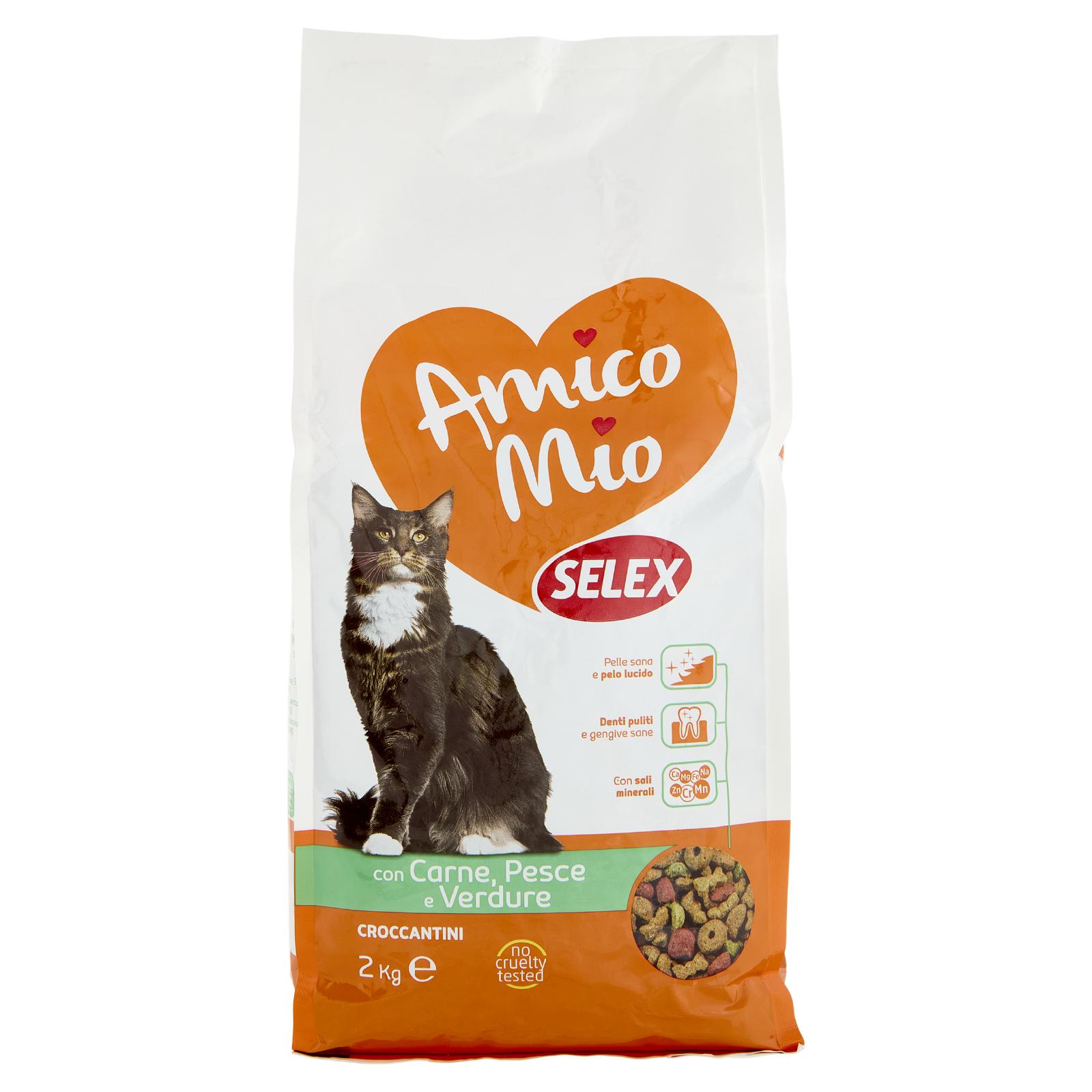 - I croccantini Amico Mio Selex, nel pratico formato scorta, sono l'alimento ideale per il mantenimento quotidiano del tuo gatto in età adulta.