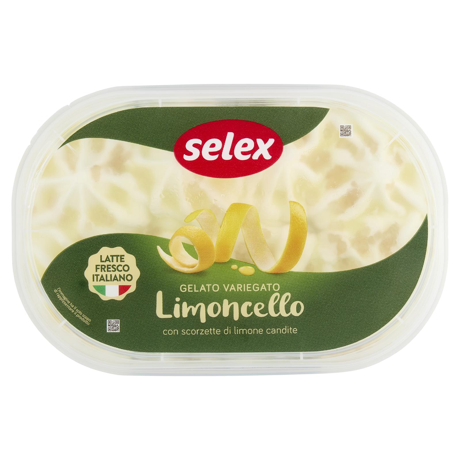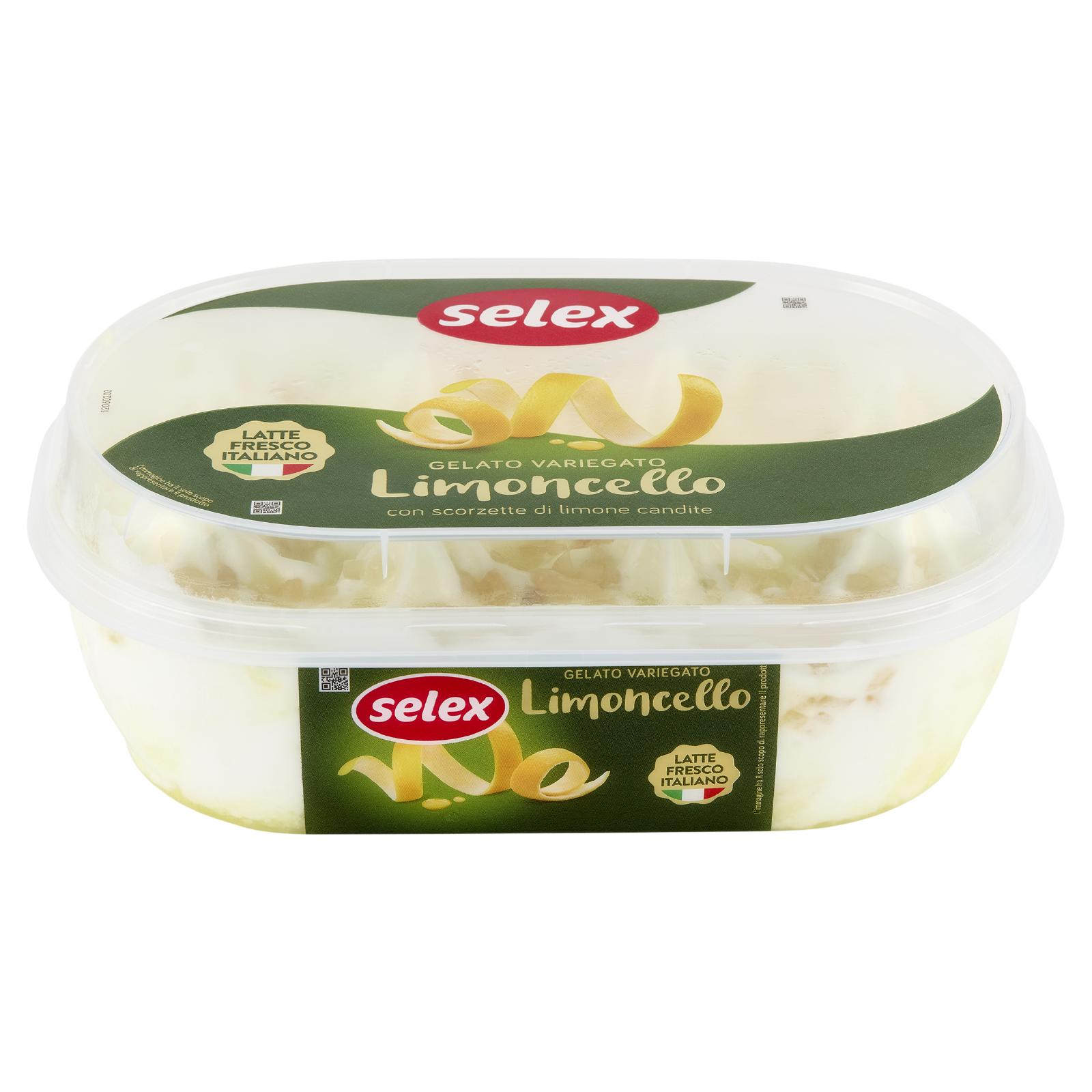 - Gelato al limone con latte fresco, variegato al gusto di limoncello e decorato con scorzette di limone candite
