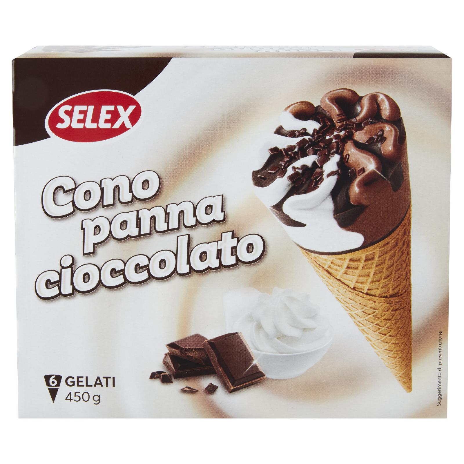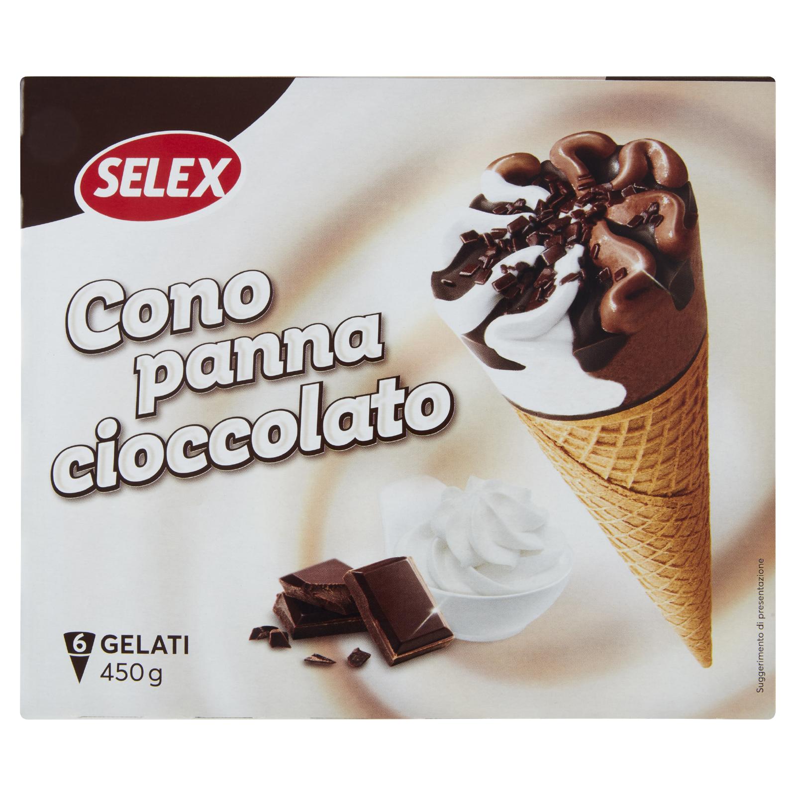 - Gelato alla crema di latte e al cioccolato con cialda, decorazione al cacao magro e scagliette di cioccolato