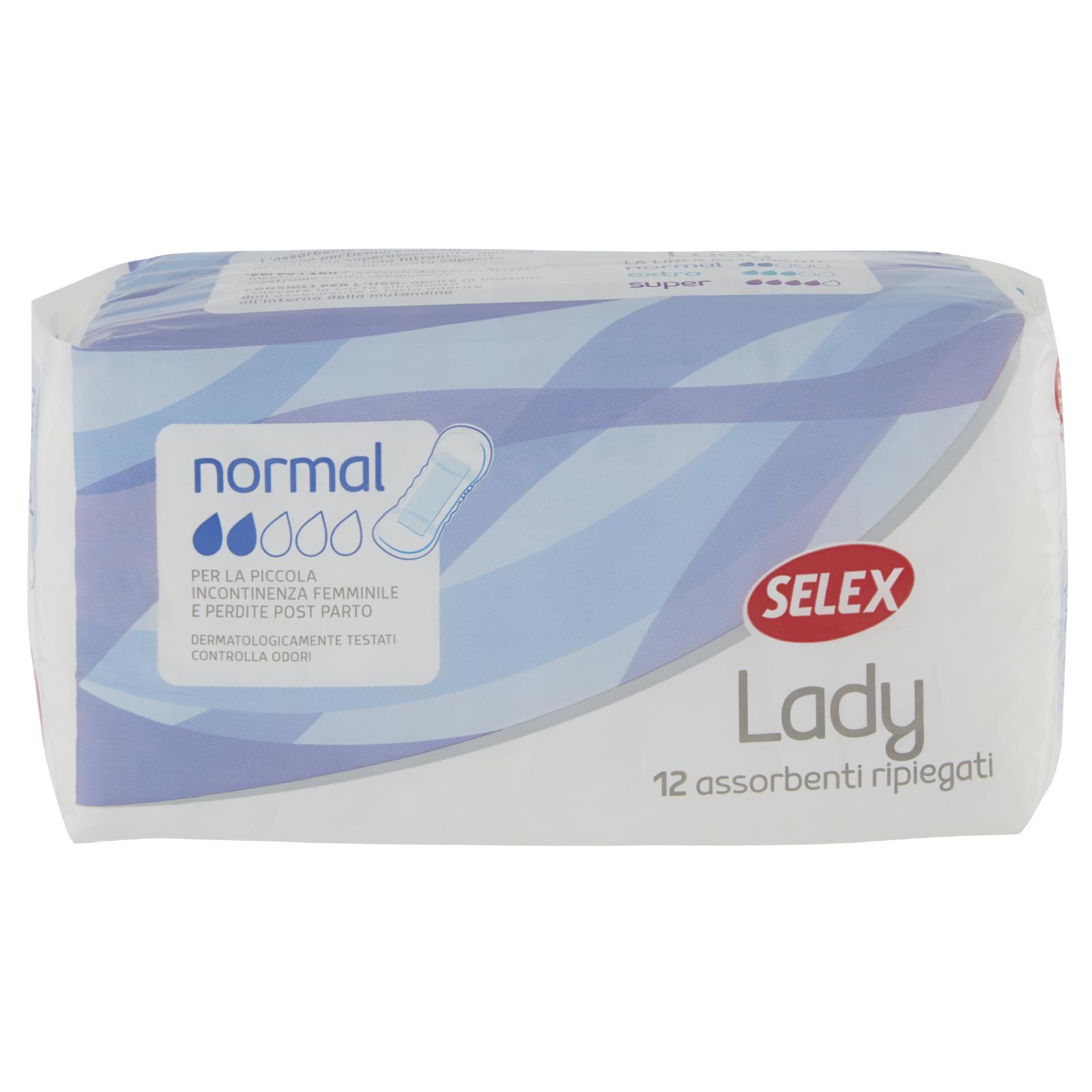 - L'assorbente Selex Lady è realizzato con una particolare miscela di cellulosa e materiale superassorbente, uniti ad un doppio morbido filtrante, che garantiscono un'elevata capacità di assorbenza. Selex Lady è consigliato per la piccola incontinenza, perdite post parto, flusso mestruale molto abbondante.