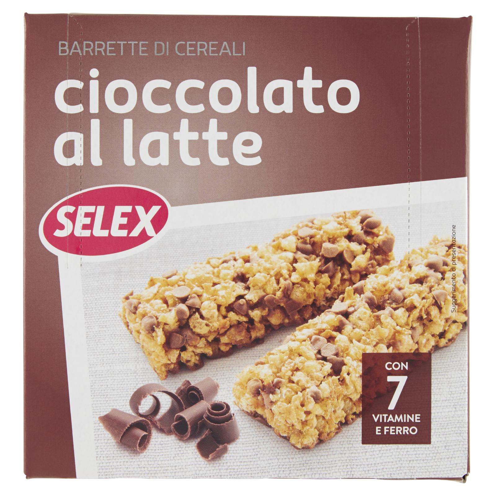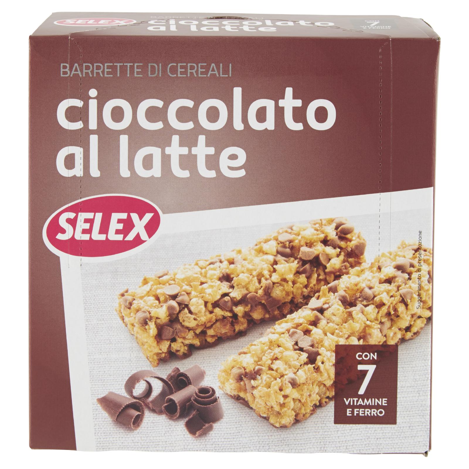 - Barrette a base di fiocchi di cereali con cioccolato al latte con aggiunta di vitamine (B1, B2, B5, B6, PP, acido folico, B12) e ferro