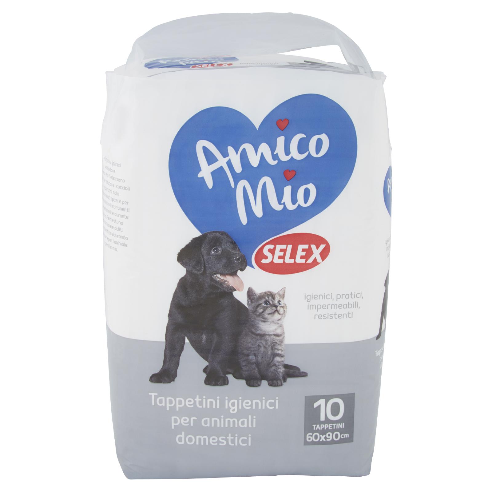 - I tappetini Igienici Antiodore Amico Mio Selex sono ideali per educare i cuccioli a sporcare solo in determinati spazi, e per i cani malati o incontinenti o per le femmine durante il ciclo. Permettono di mantenere puliti gli ambienti assicurando benessere per l'animale e per l'uomo.