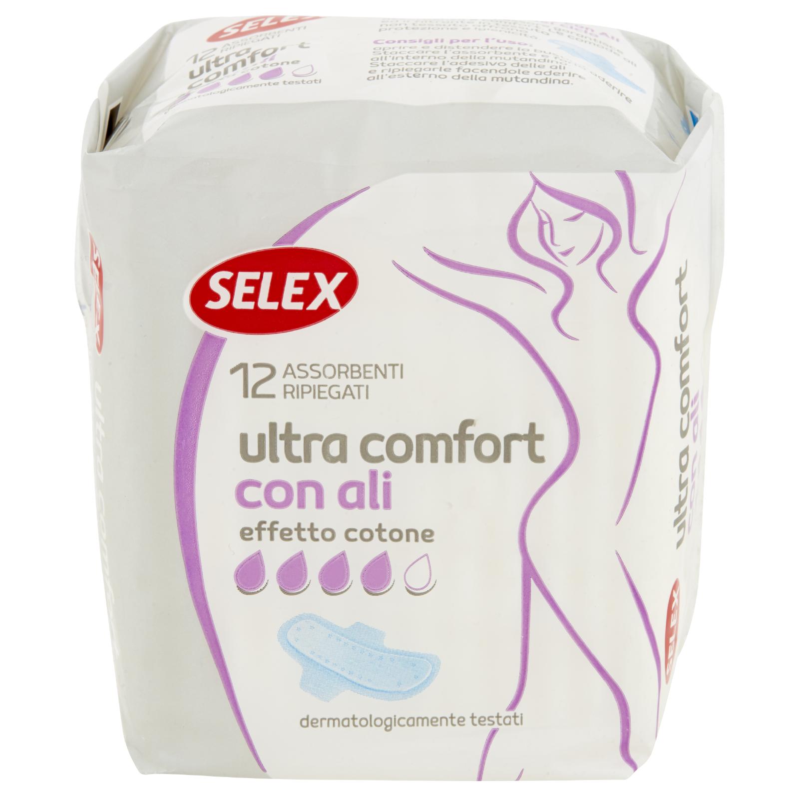- Selex Ultra Comfort con Ali per tutti i giorni del ciclo in soli 2 mm di spessore garantisce assorbenza e comfort. Le comode ali ed il filtrante in tessuto non tessuto offrono protezione e igienicità.