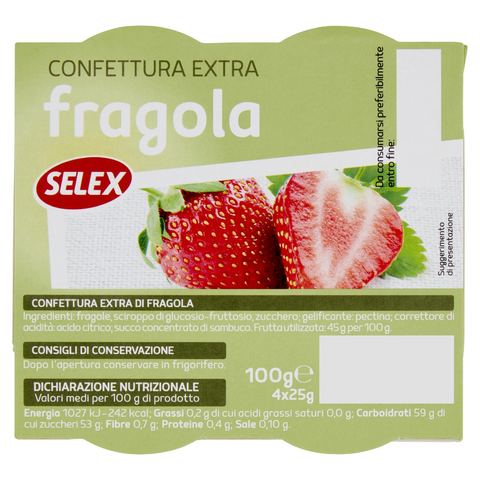 Selex Confettura Extra di Fragole in Monoporzioni 4x25 g
