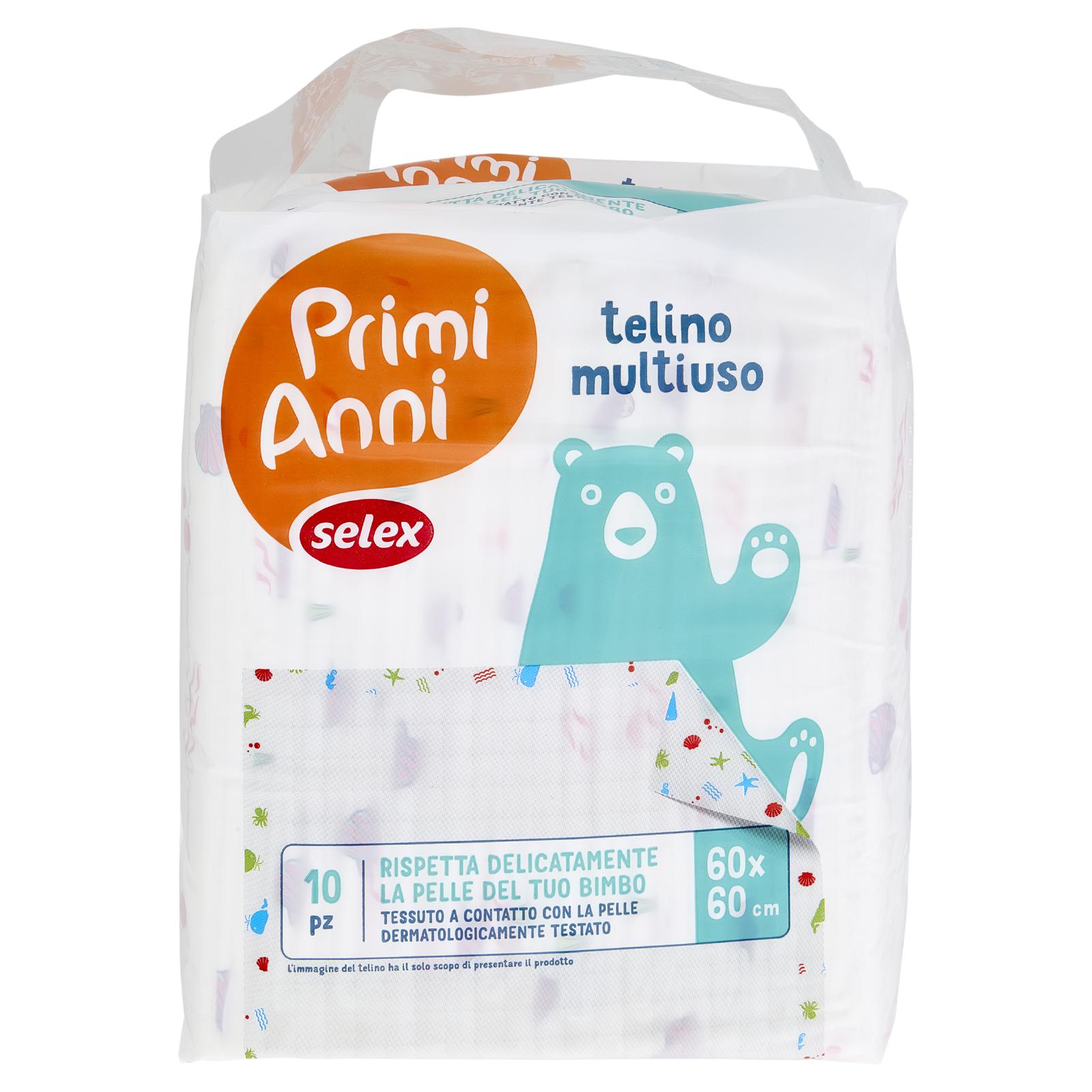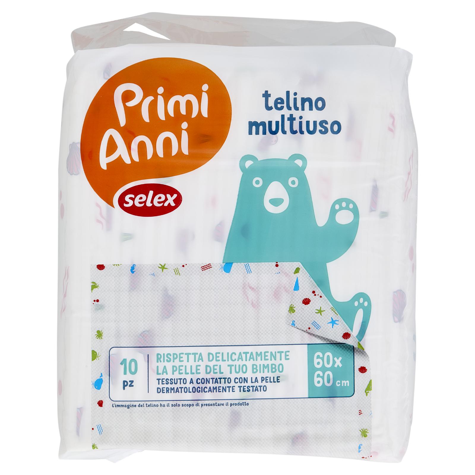 - Filtrante in morbido tessuto Tampone superassorbente extra-soffice Strato esterno impermeabile Telino multiuso Il telo igienico Primi Anni Selex è un pratico ed igienico supporto che protegge il tuo bimbo dal contatto con superfici sporche o umide. Inoltre protegge gli arredi di casa, l'auto ed i vestiti dagli "scherzetti" del tuo bimbo.