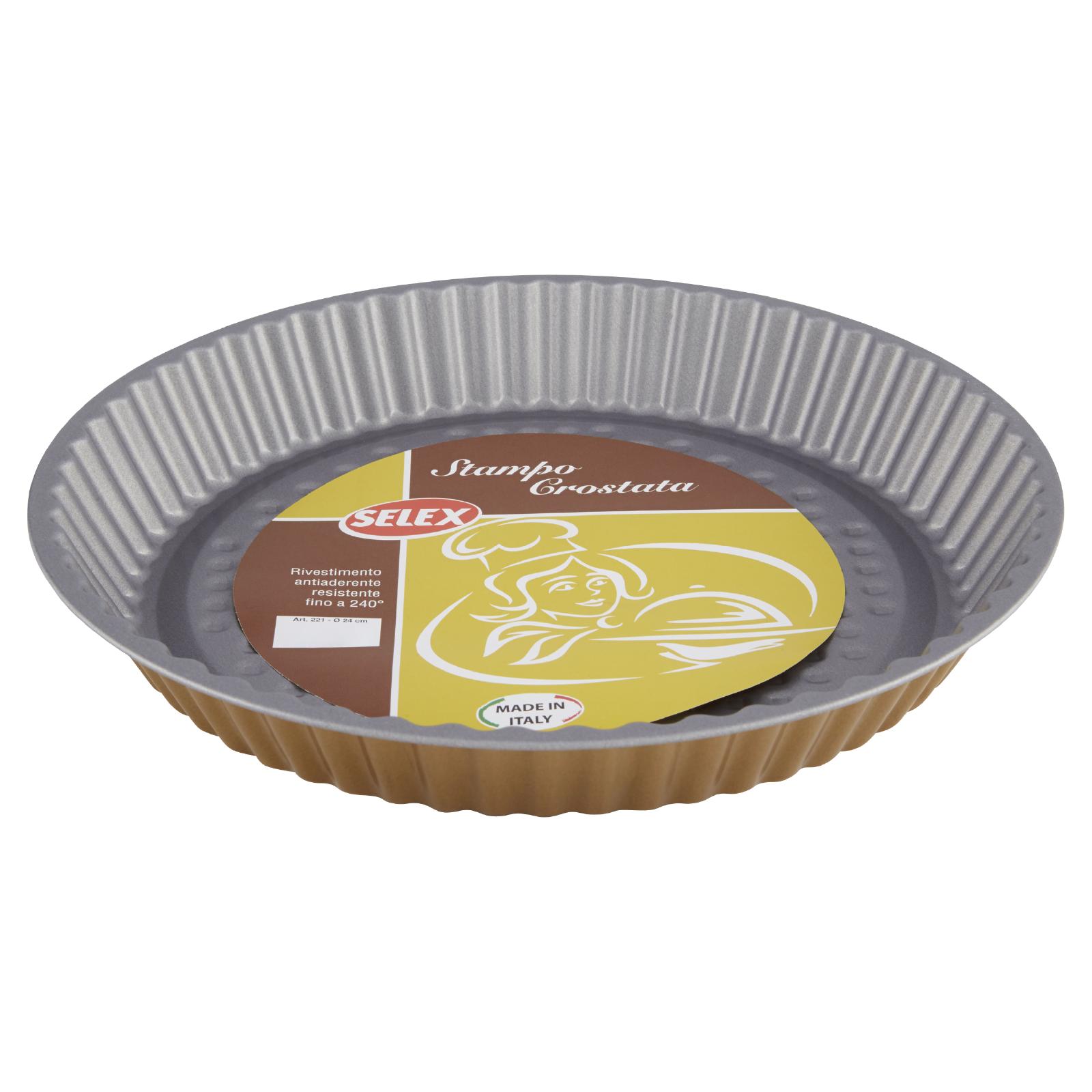 Stampo crostata: Lo stampo crostata Selex è realizzato in acciaio con rivestimento antiaderente. Grazie alla conducibilità dell'acciaio ed al basso spessore, la cottura in forno risulta rapida ed uniforme. Il rivestimento antiaderente assicura ottimi risultati di sfornatura del dolce. Facile da pulire dopo l'utilizzo.