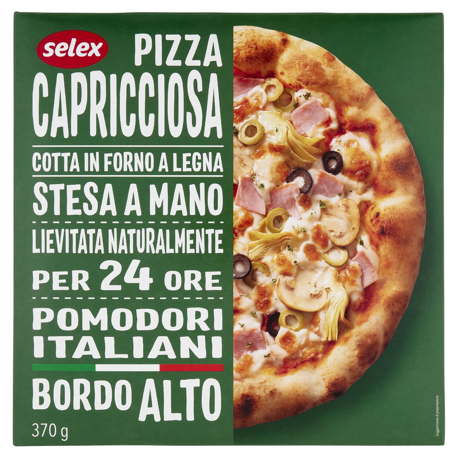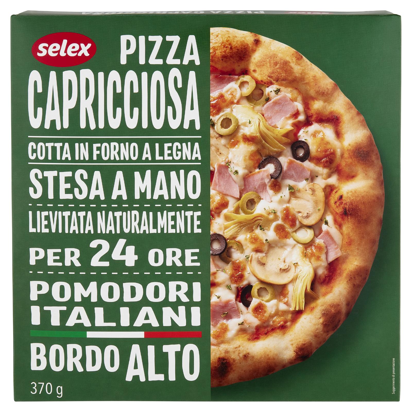 - Può contenere soia e senape *Nonostante una lavorazione accurata non si può escludere completamente la presenza di noccioli o frammenti di noccioli Impasto 56,1% (farina di grano tenero, acqua, olio extra vergine di oliva, sale, lievito) Salsa di pomodoro 13,5% (polpa di pomodoro 6,4% sul prodotto finito, passata di pomodoro 6,4% sul prodotto finito, acqua, olio di oliva, sale, origano) Mozzarella 10,8% (latte, sale, caglio microbico, fermenti lattici) Prosciutto cotto 5,4% [carne di suino, acqua, sale, destrosio, maltodestrine, antiossidanti: ascorbato di sodio, estratti di rosmarino; estratti di spezie (aglio, macis, pepe), aroma di affumicatura, conservante: nitrito di sodio] Carciofi 4,1% (carciofi, sale, regolatore di acidità: acido citrico, antiossidante: acido ascorbico) Funghi (Agaricus bisporus) 4,1% Olio di semi di girasole 2,2% Olive verdi a rondelle 1,9% (olive verdi*, sale, antiossidante: acido lattico) Olive nere a rondelle 1,9% (olive nere*, sale, stabilizzante: gluconato ferroso)