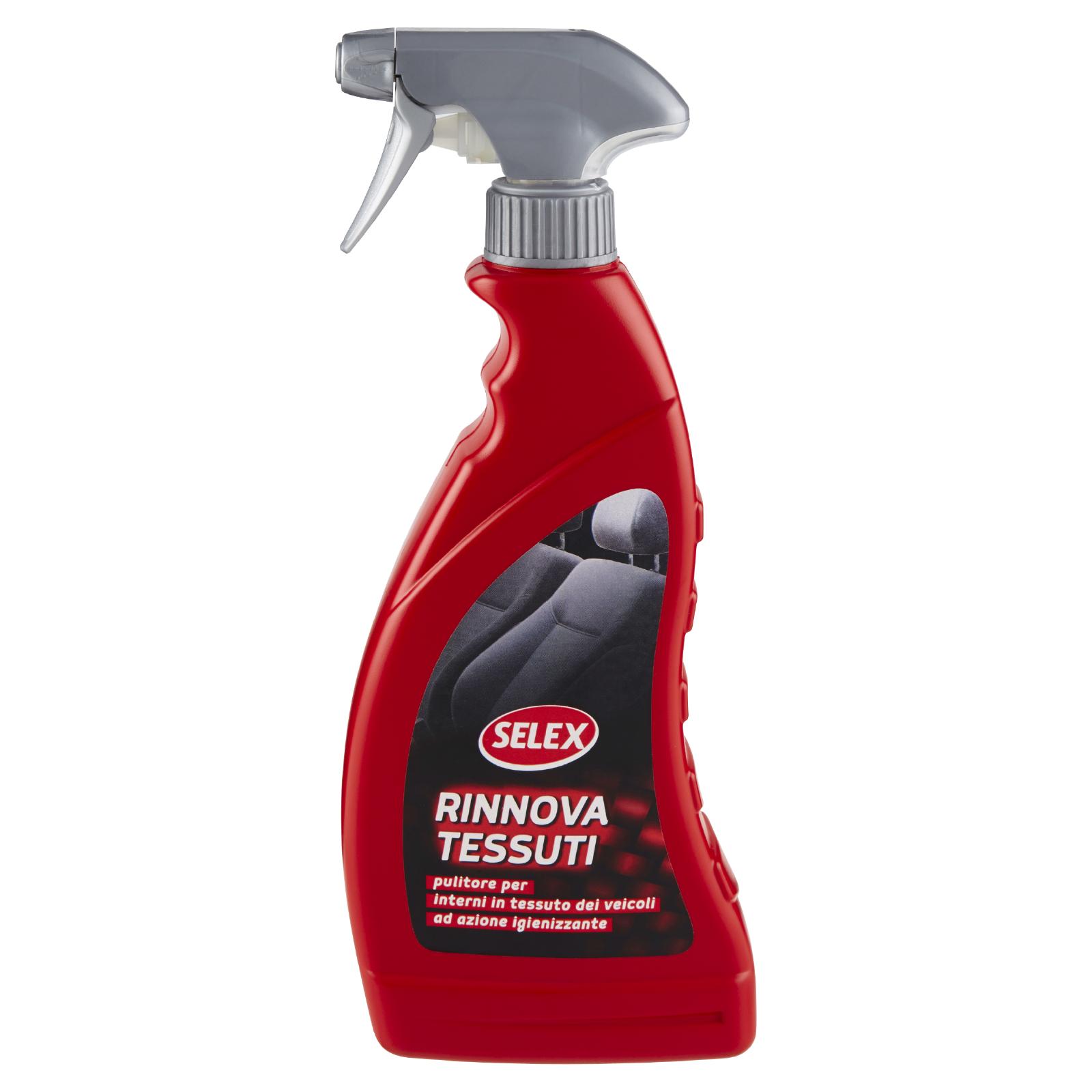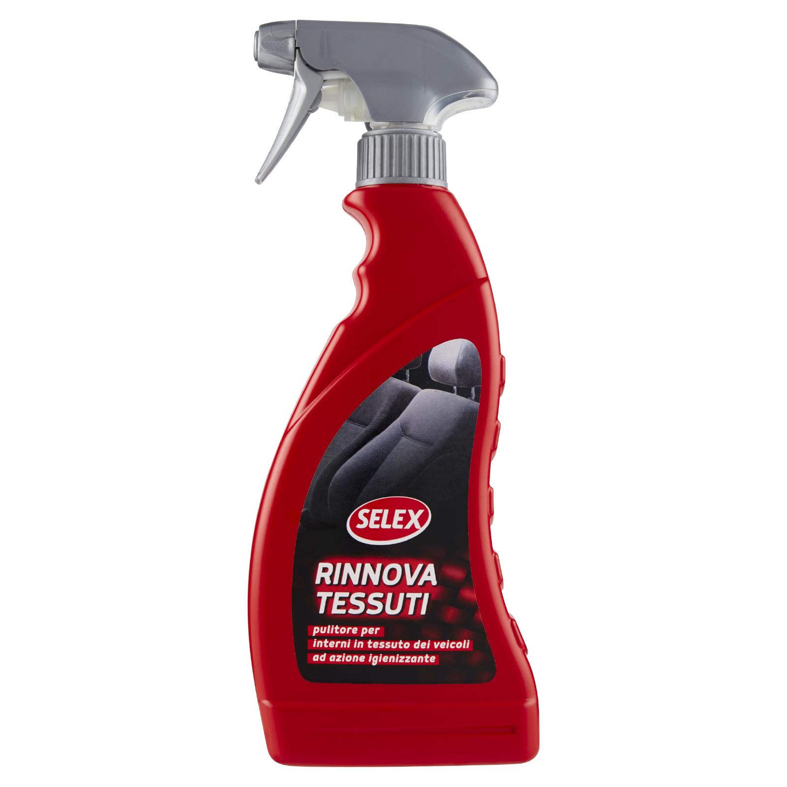- Detergente appositamente formulato per la pulizia degli interni in tessuto dei veicoli (sedili, tappeti, interni di sportelli...): rimuove dalle parti lo sporco sia di origine organica che inorganica. Le particolari sostanze in esso contenute esplicano anche un'azione igienizzante, lasciando le superfici trattate gradevolmente profumate.