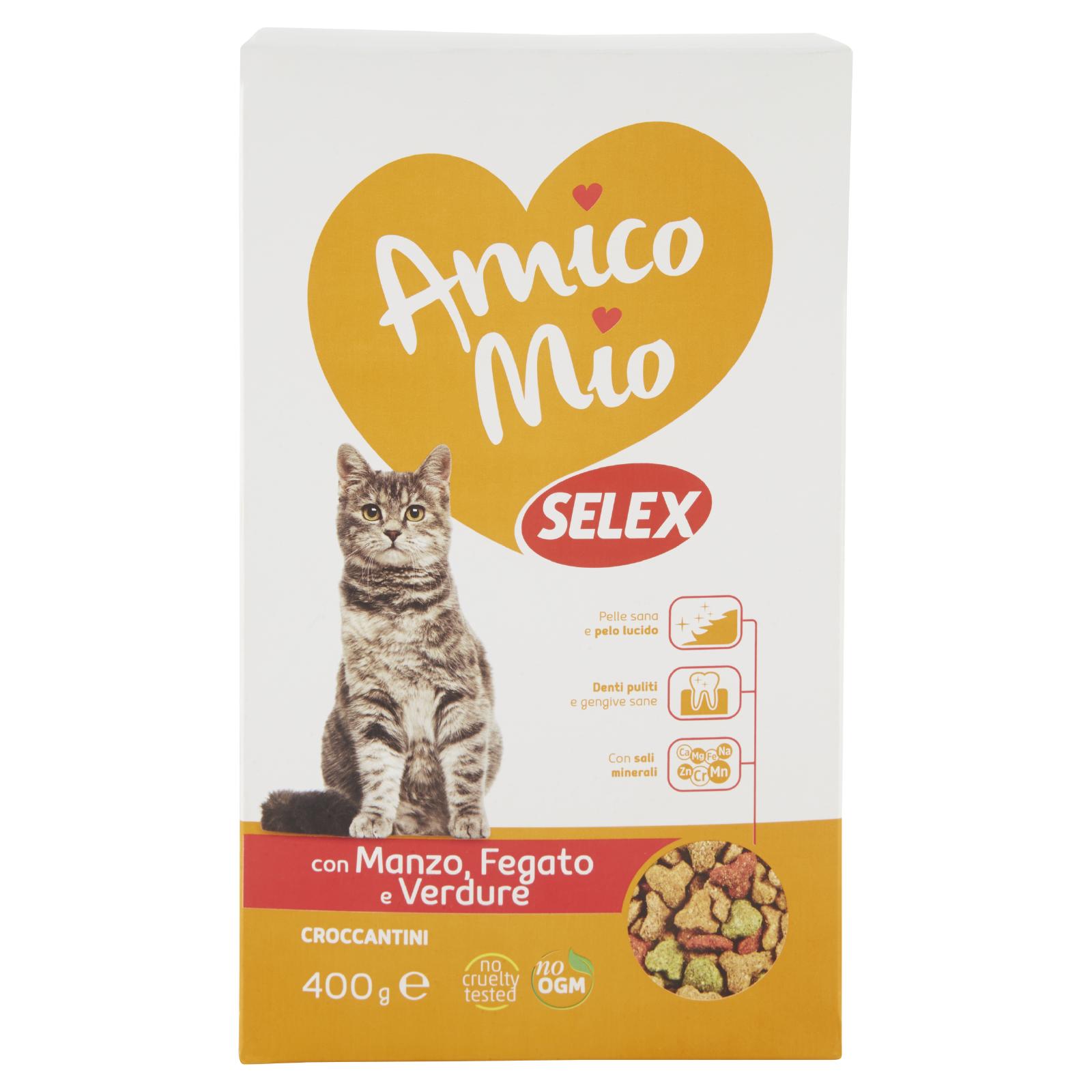 - I croccantini Amico Mio Selex sono l'alimento ideale per il mantenimento quotidiano del tuo gatto in età adulta.