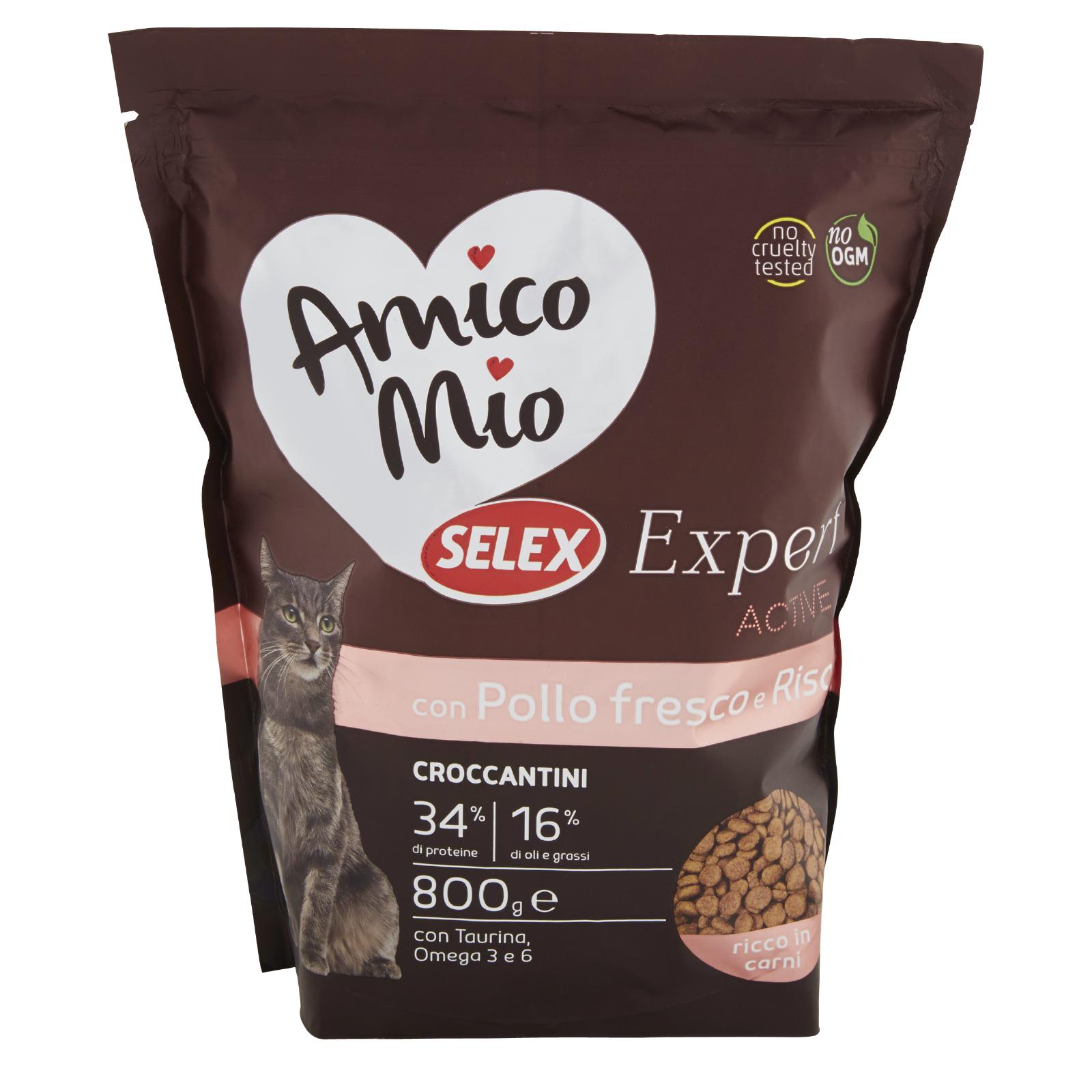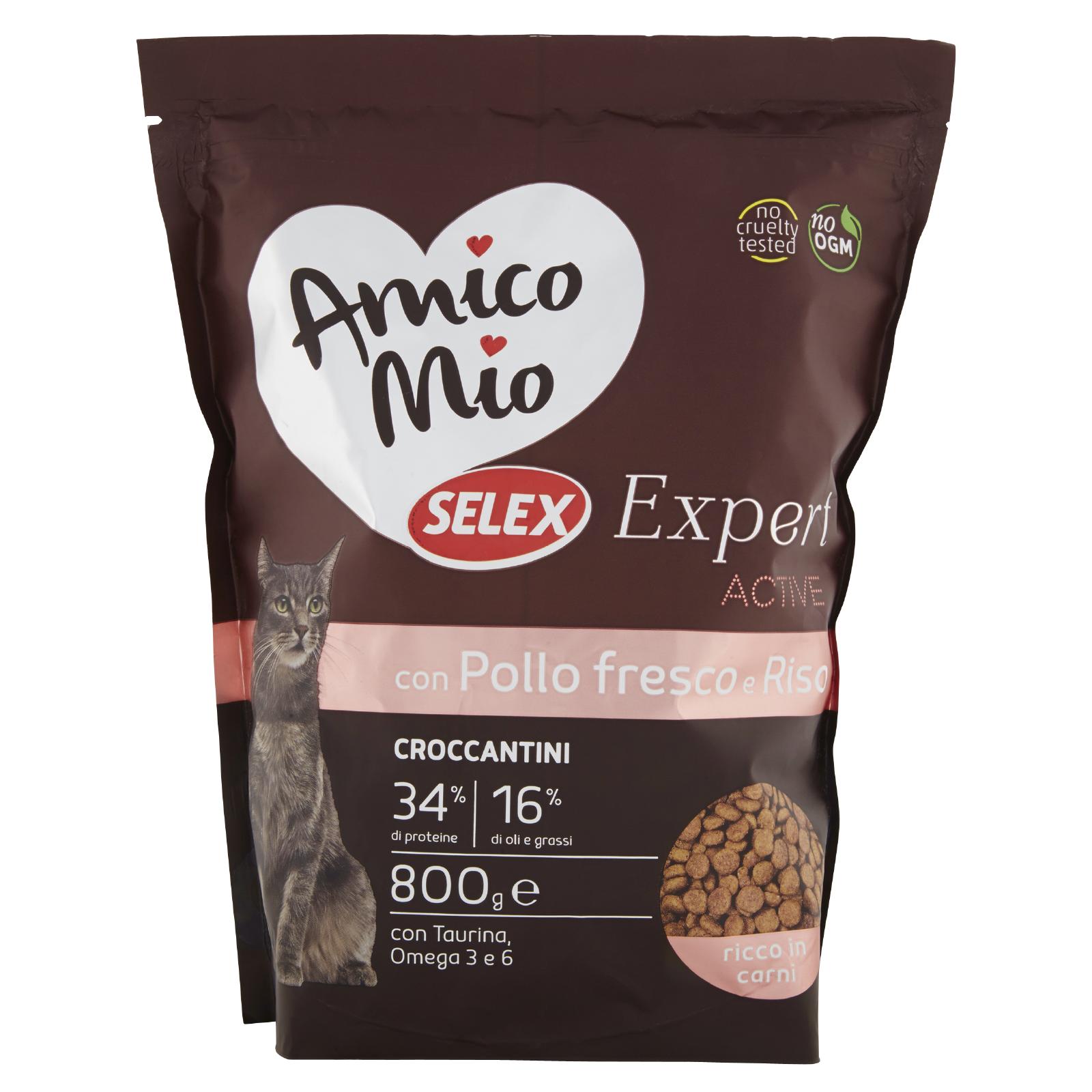 - Grazie alla ricchezza di proteine, i croccantini Amico Mio Selex Expert sono un pasto completo e bilanciato per fornire tutta l'energia e la carica di cui il tuo gatto ha bisogno. Con Omega 3 e 6 il cui giusto rapporto permette il corretto apporto nutrizionale dei grassi. Con Taurina, che favorisce un corretto funzionamento dei tessuti nervoso e muscolare.