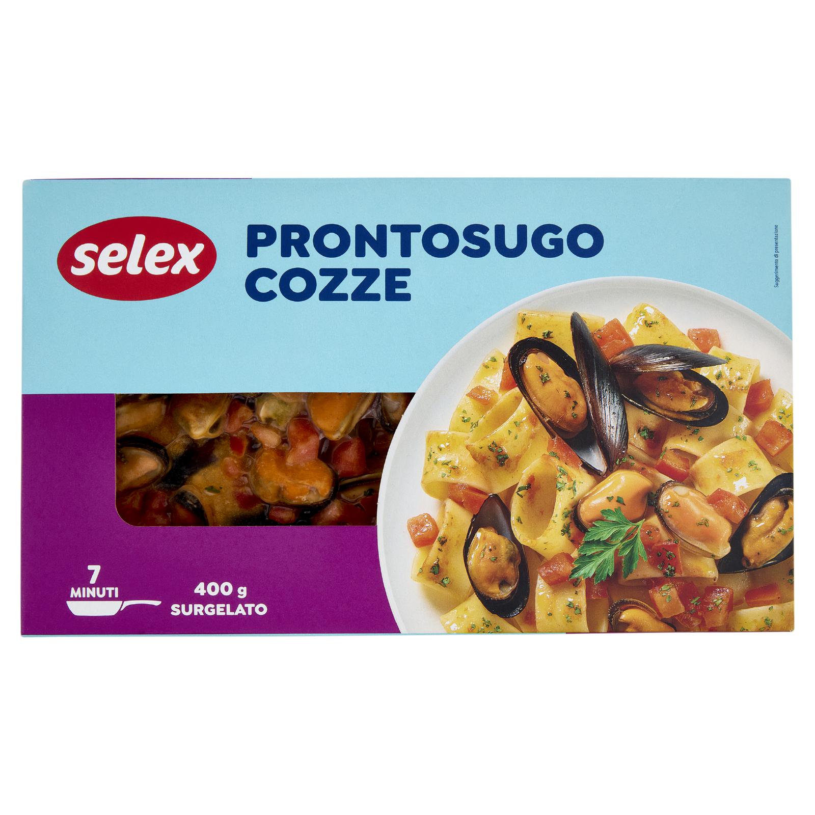 - Preparazione alimentare surgelata a base di cozze (46%), sugo (43%) e pomodori (10%)