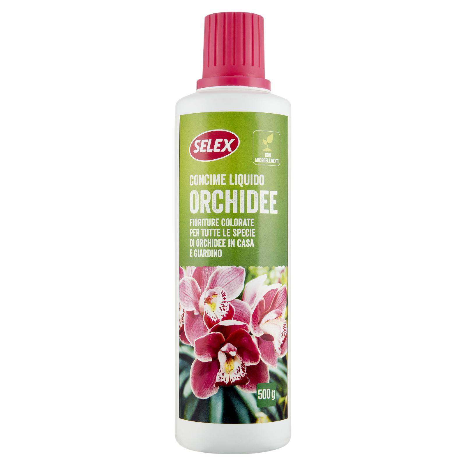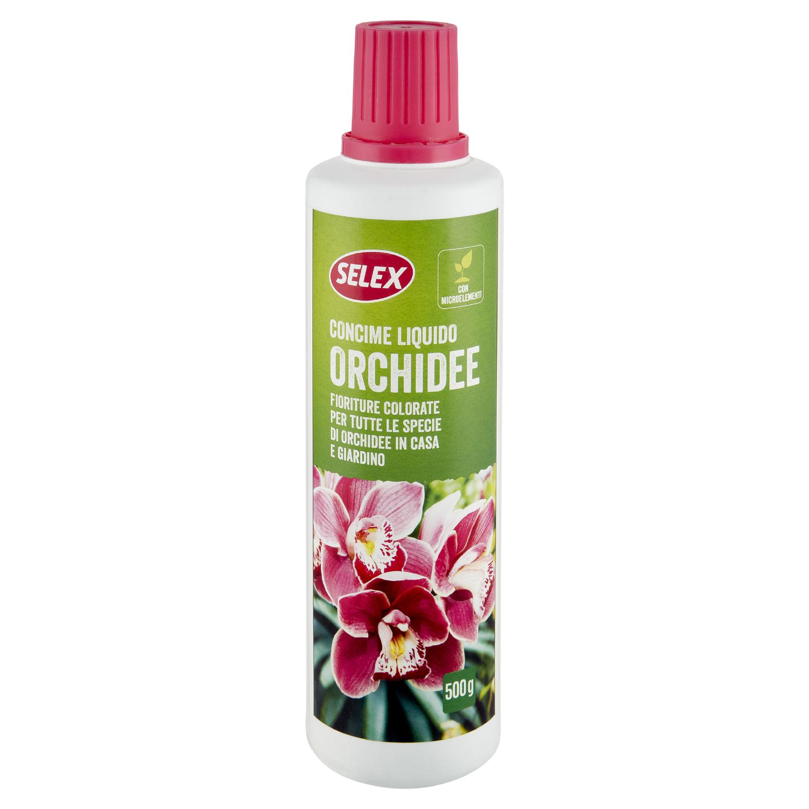 Il Concime Liquido Orchidee Selex è appositamente studiato per apportare un nutrimento equilibrato a tutte le specie di orchidee, sia in vaso che in terra, in casa e in giardino. La presenza di microelementi favorisce un ottimo sviluppo dell'apparato radicale e quella del fosforo aiuta, supporta la pianta nelle fioriture e rende più resistente la pianta alle avversità.