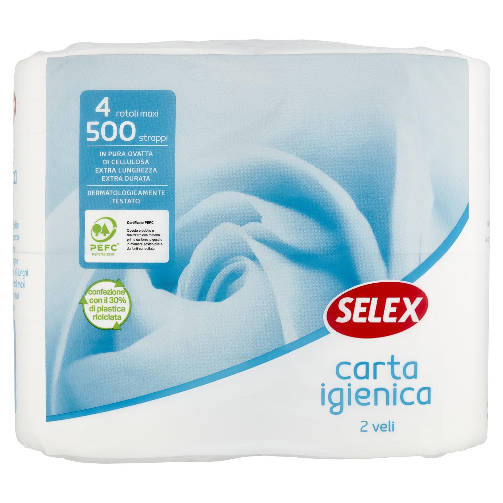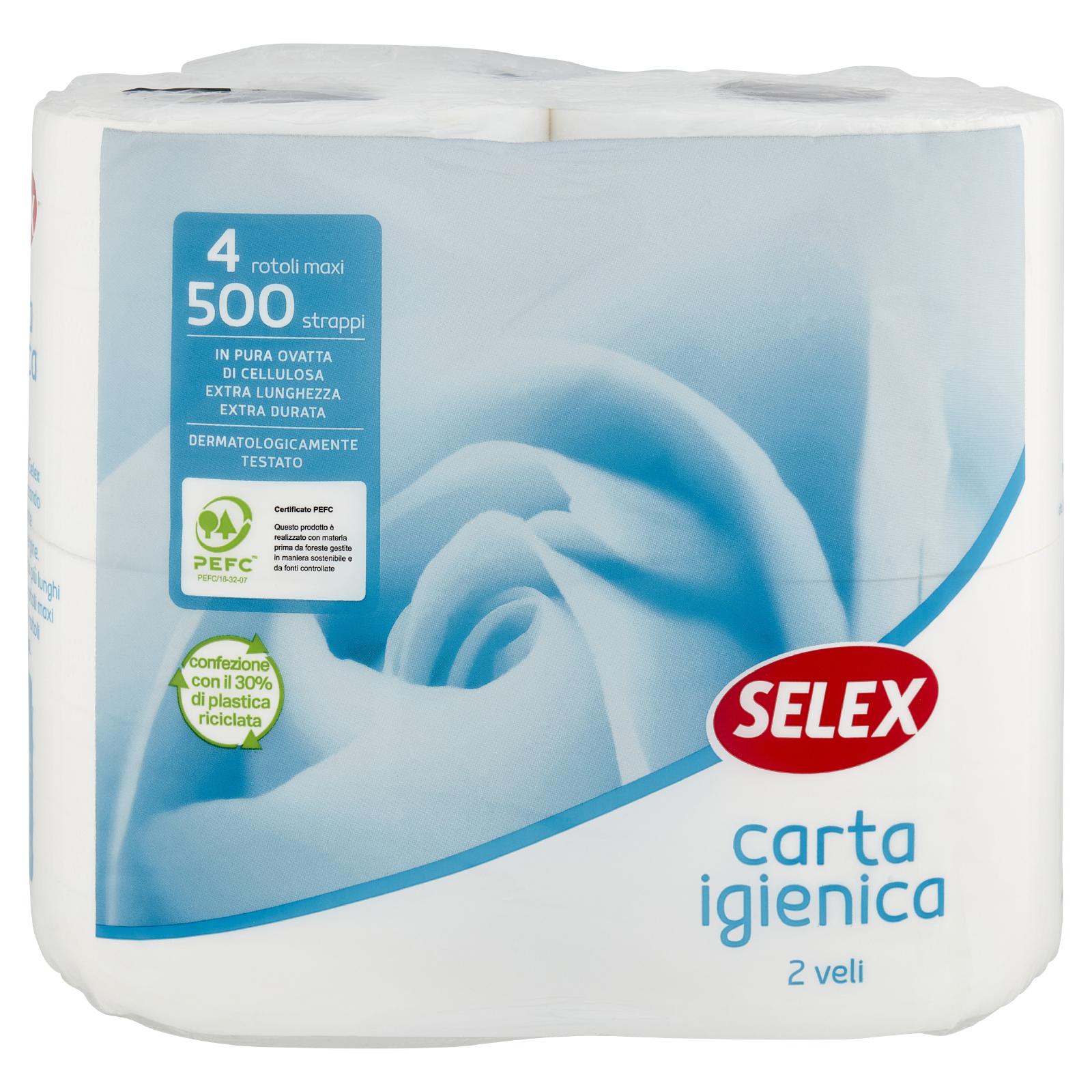 - La Carta Igienica Selex è realizzata utilizzando esclusivamente pura cellulosa vergine. I rotoli maxi sono molto più lunghi dei normali rotoli: 4 rotoli maxi equivalgono a 10 rotoli da 200 strappi.