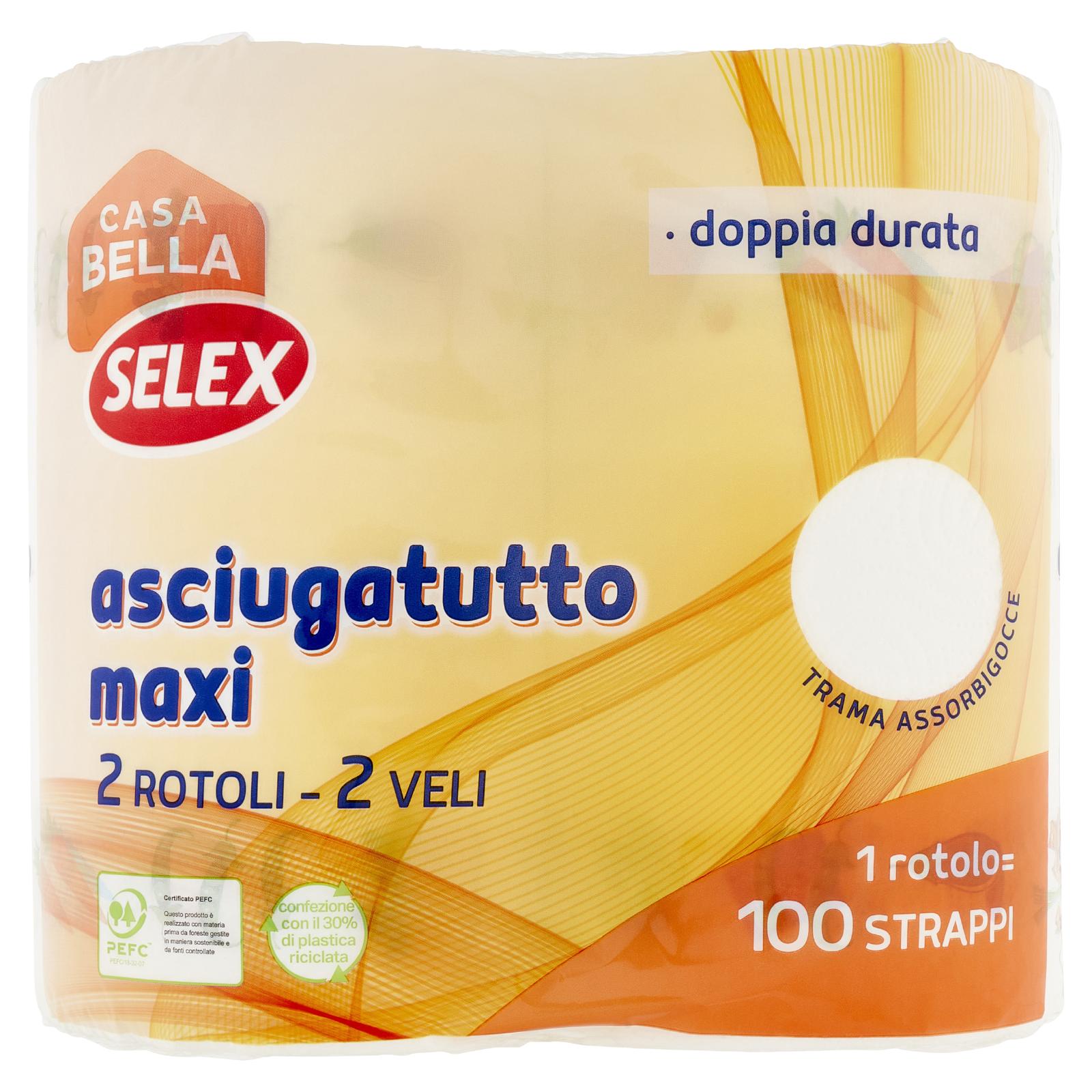 Selex Casa Bella Asciugatutto 2 Veli Maxi Rotolo 100 Strappi 2 Rotoli