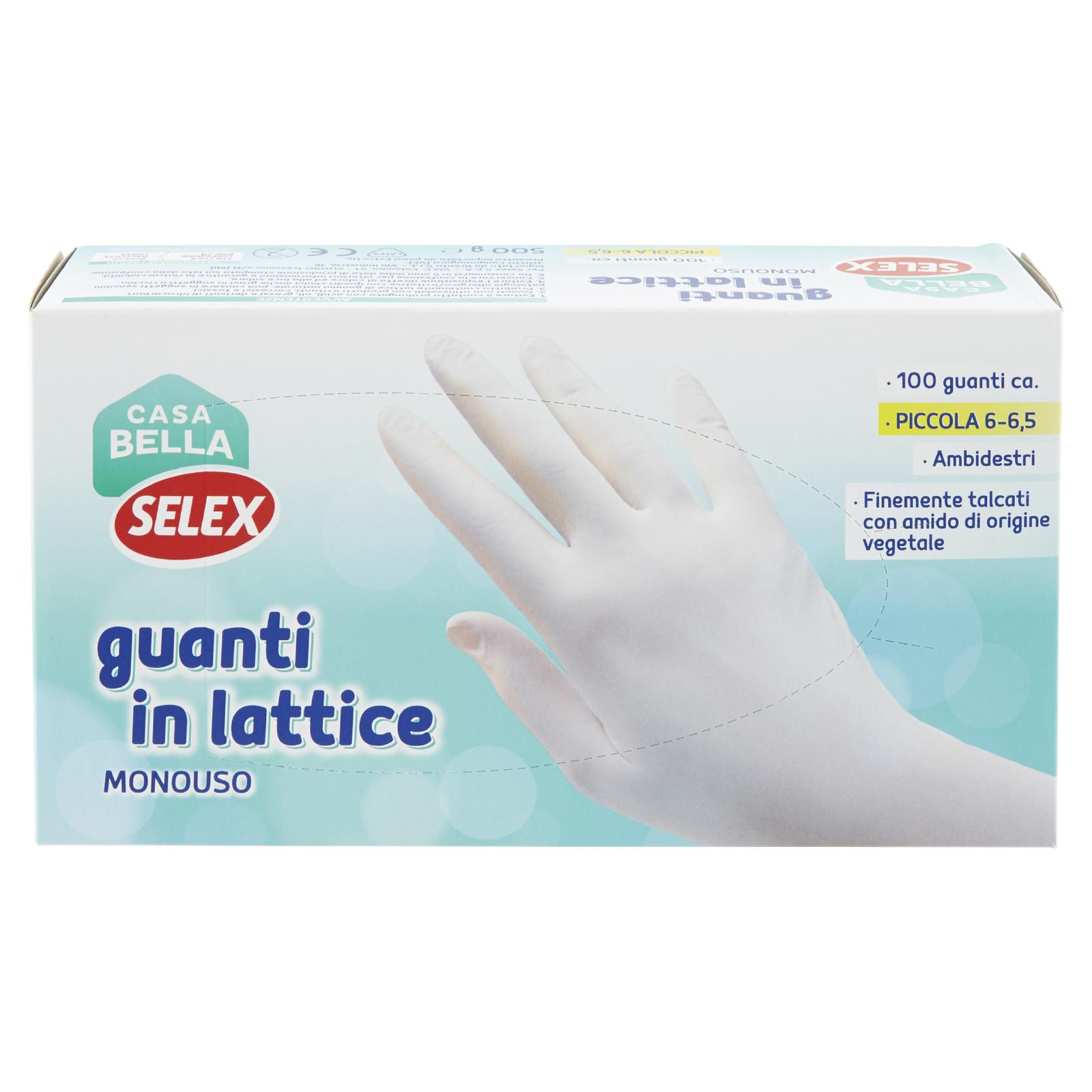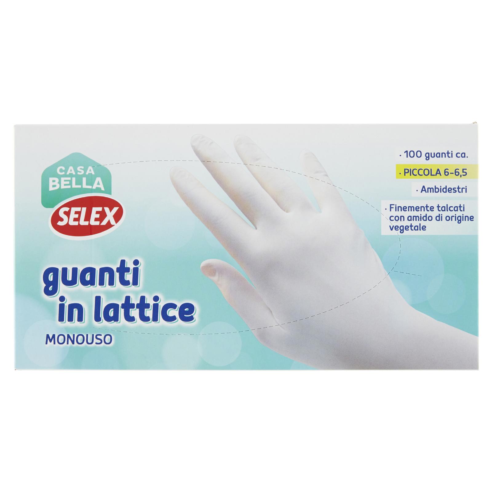 Selex Casa Bella Guanti Monouso in Lattice Naturale Misura Piccola (6-6,5) Dispenser 100 pezzi