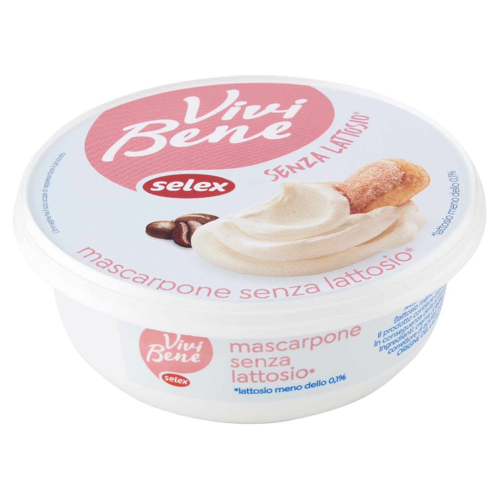 - Mascarpone senza lattosio (lattosio meno di 0,1 g per 100 g) Il prodotto contiene glucosio e galattosio in conseguenza della scissione del lattosio