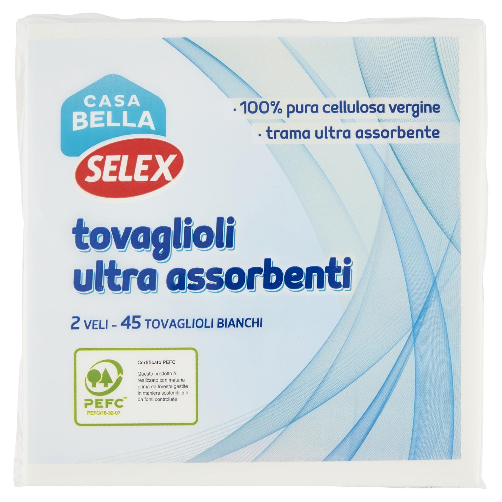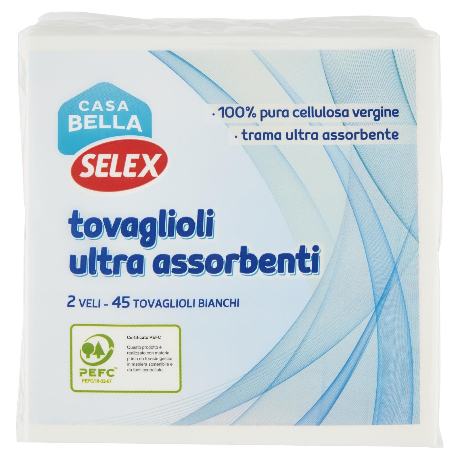 - Tovaglioli micro goffrati Casa Bella Selex in pura cellulosa vergine, resistenti ed ultra assorbenti.