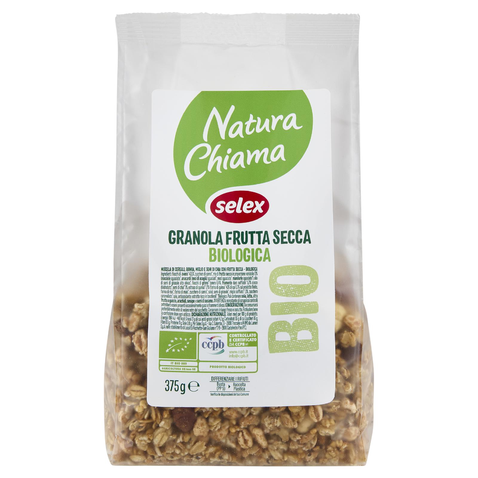 - Fiocchi di avena* 43,5% Zucchero di canna* Mix di frutta secca in proporzione variabile 12% (nocciole sgusciate*, anacardi (noci di acagiù) sgusciati*, noci sgusciate*, mandorle sgusciate*) Olio di semi di girasole alto oleico* Fiocchi di grano* tenero 6,4% Frumento duro soffiato* 5,7% cocco disidratato* Semi di chia* 2% Estruso di quinoa* 1,7% (farina di quinoa* 43% di cui 0,7% sul prodotto finito, farina di riso*, farina di mais*, zucchero di canna*, sale) Semi di girasole* Miglio soffiato* 1,1% Zucchero caramellato* Sale Antiossidante: estratto ricco in tocoferoli* *Biologico Può contenere soia, latte, altra frutta a guscio, arachidi, senape e semi di sesamo