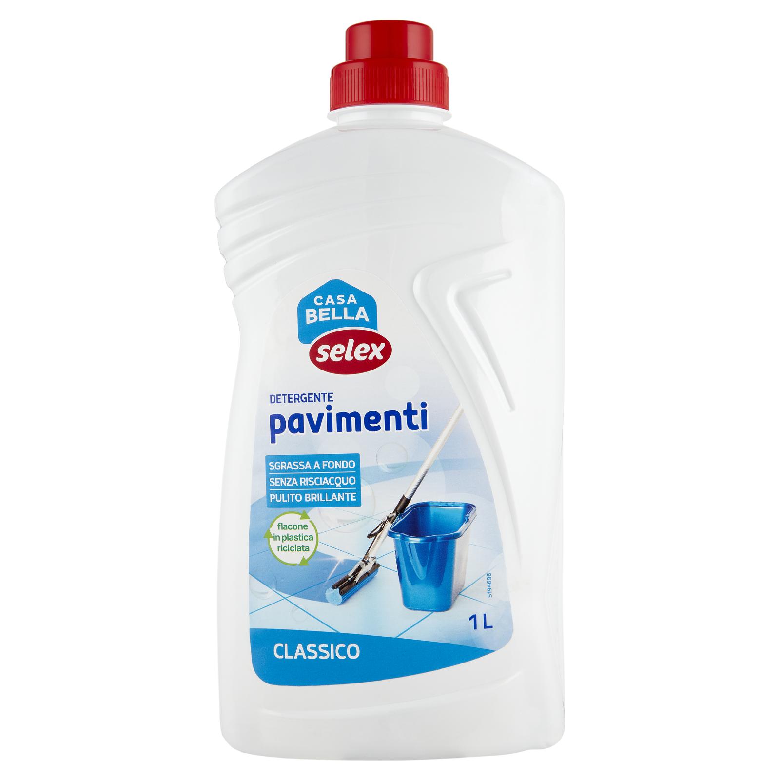 - Il detergente per pavimenti Classico Casa Bella Selex, grazie alla sua formula ad alto potere sgrassante e senza necessità di risciacquo, è indicata per rimuovere lo sporco e il grasso da tutte le superfici dure, in modo efficace e veloce. Casa pulita e brillante, senza sforzo.