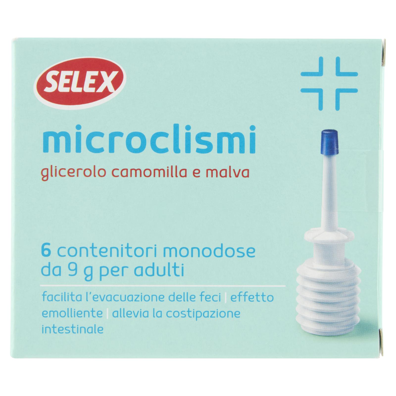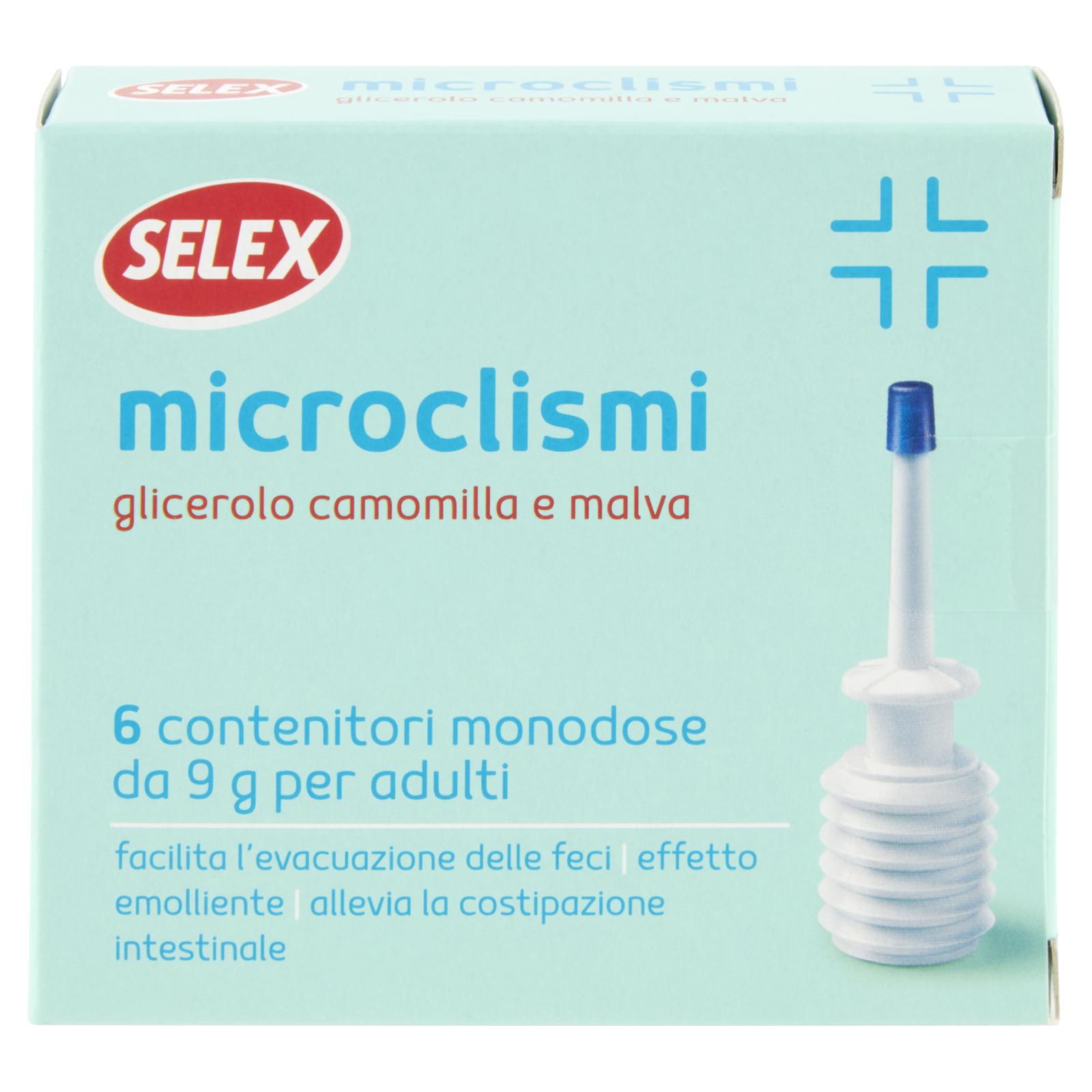 - Indicazioni. Microclisma monouso, ad azione e durata temporanea. Facilita l'evacuazione delle feci con effetto emolliente, alleviando la costipazione intestinale.