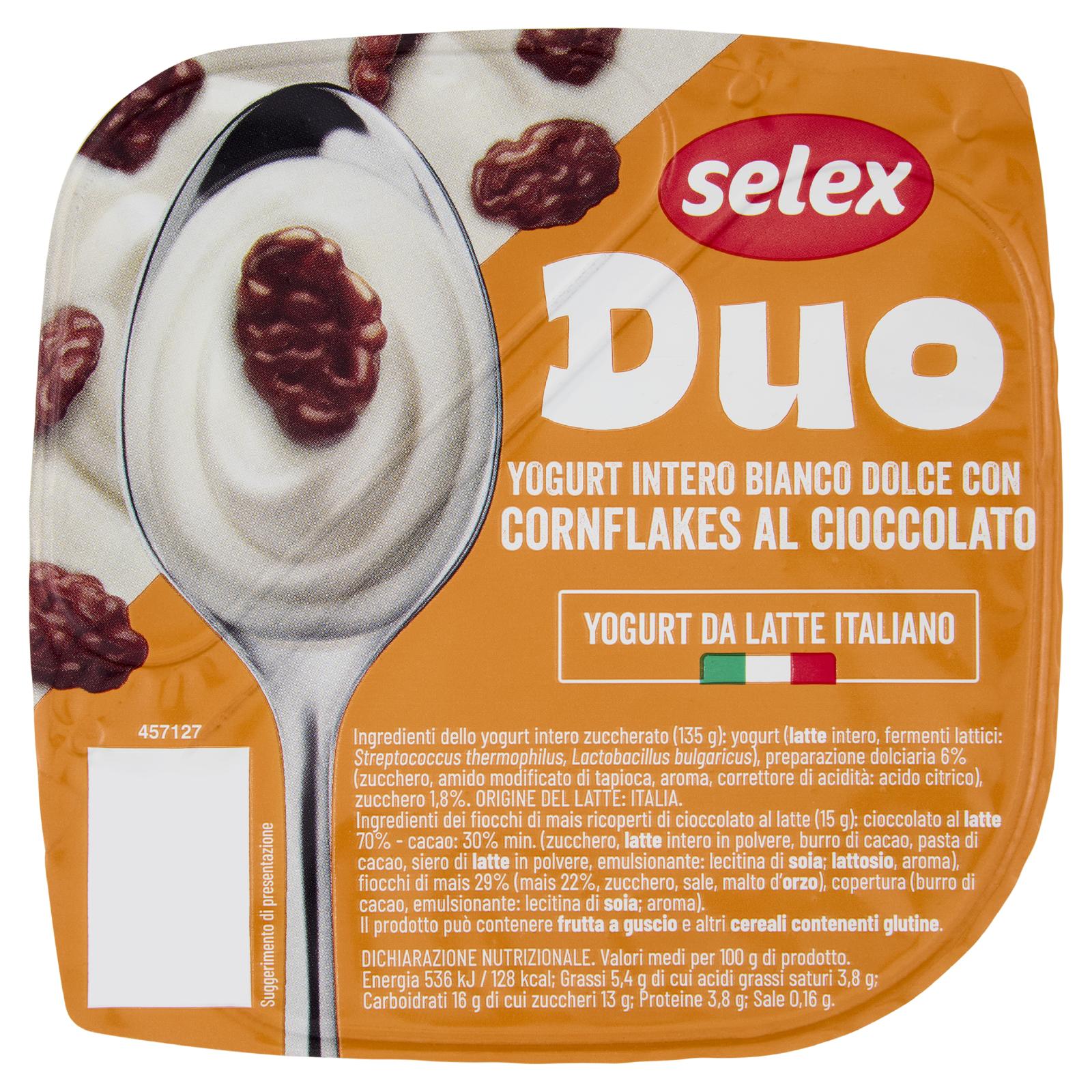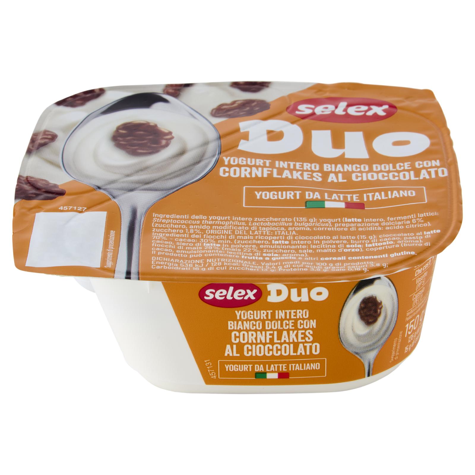 - Yogurt intero zuccherato con preparazione dolciaria con fiocchi di mais ricoperti di cioccolato al latte