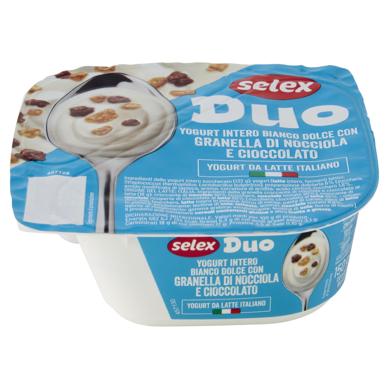 - Yogurt intero zuccherato con preparazione dolciaria con granella croccante di nocciola e cioccolato