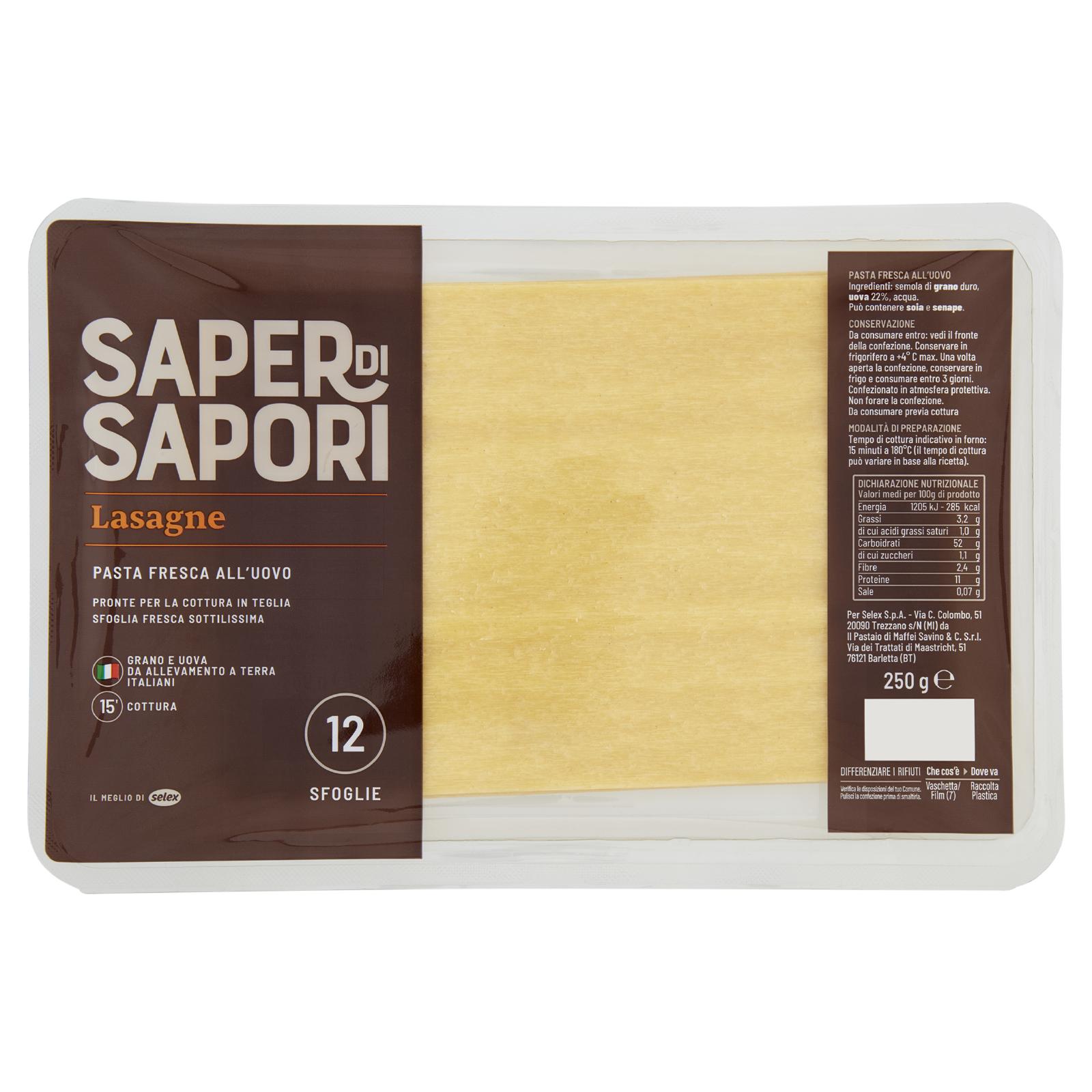 Selex Saper di Sapori Pasta Fresca all'Uovo Lasagne 250 g