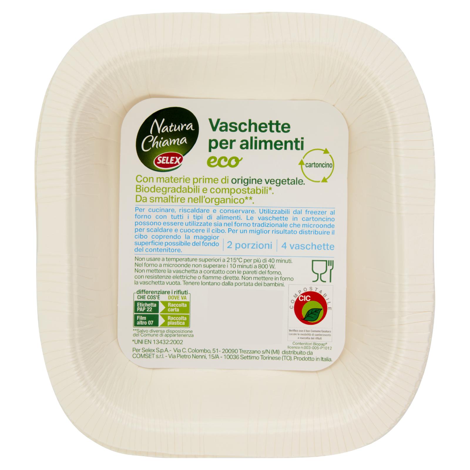 - Per cucinare, riscaldare e conservare. Utilizzabili dal freezer al forno con tutti i tipi di alimenti. Le vaschette in cartoncino possono essere utilizzate sia nel forno tradizionale che microonde per scaldare e cuocere il cibo. Per un miglior risultato distribuire il cibo coprendo la maggior superficie possibile del fondo del contenitore.