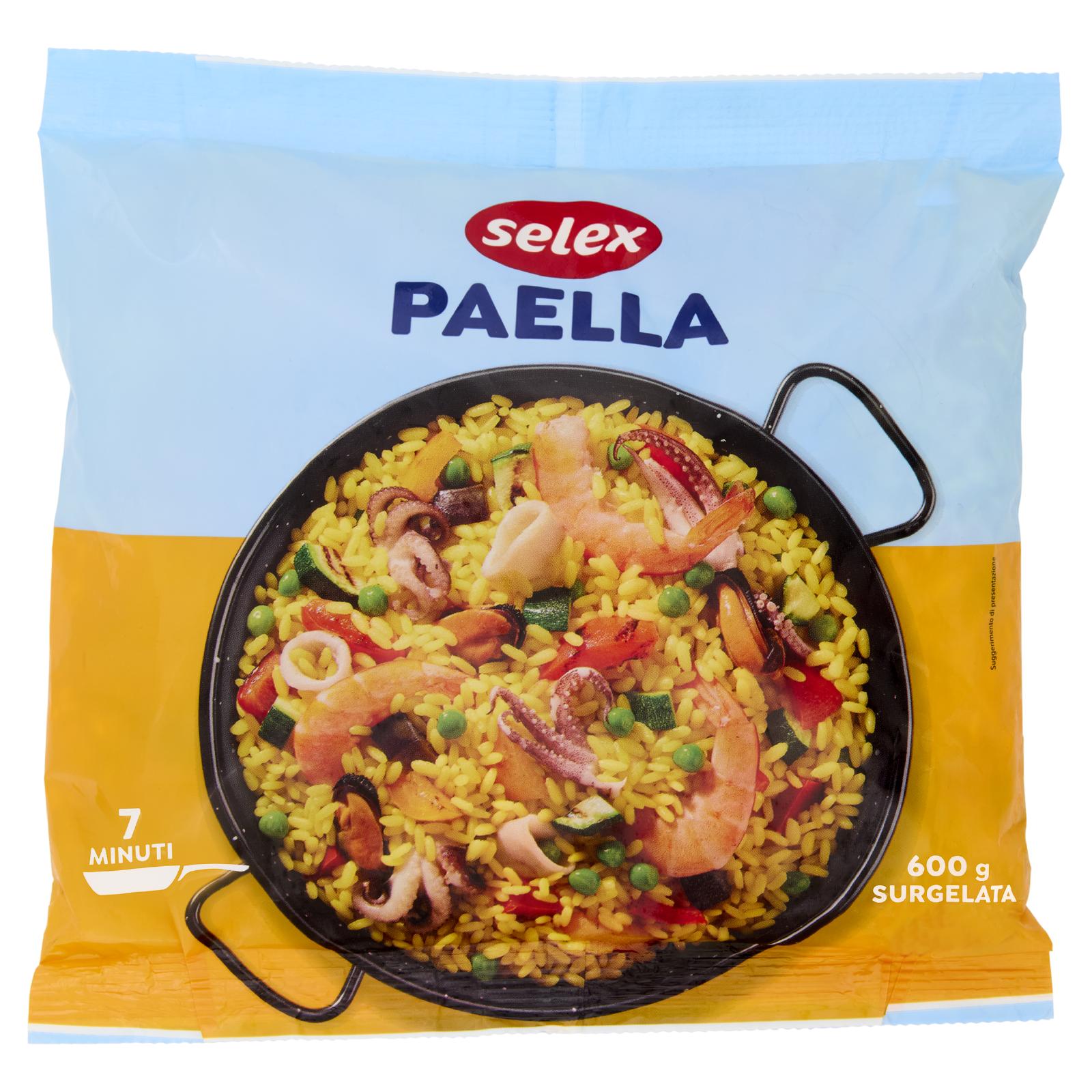 - Riso precotto condito (acqua, riso, olio di semi di girasole, sale, curcuma) Sugo [brodo di pesce (acqua, merluzzo, cipolla), passata di pomodoro, totani o calamari o seppie o polpi*, polpi, brodo di vongole, olio extra vergine di oliva, olio di semi di girasole, peperoni grigliati, ortaggi in proporzione variabile (carota, cipolla, sedano), amido di patate, pasta d'acciughe (acciughe, sale, olio di semi di girasole), aglio, sale, vino bianco, doppio concentrato di pomodoro, zucchero, prezzemolo, peperoncino, alloro] Ortaggi in proporzione variabile (piselli, peperoni grigliati, zucchine grigliate, melanzane grigliate, cipolle, pomodori) Code di gamberi scottati (gamberi, acqua, sale) (contiene solfiti) Calamari Cozze cotte e sgusciate *La lettera riportata nel riquadro dedicato alla scadenza e al lotto, indica la materia prima utilizzata: T) totani; C) calamari; S) seppie; P) polpi Può contenere semi di sesamo e senape