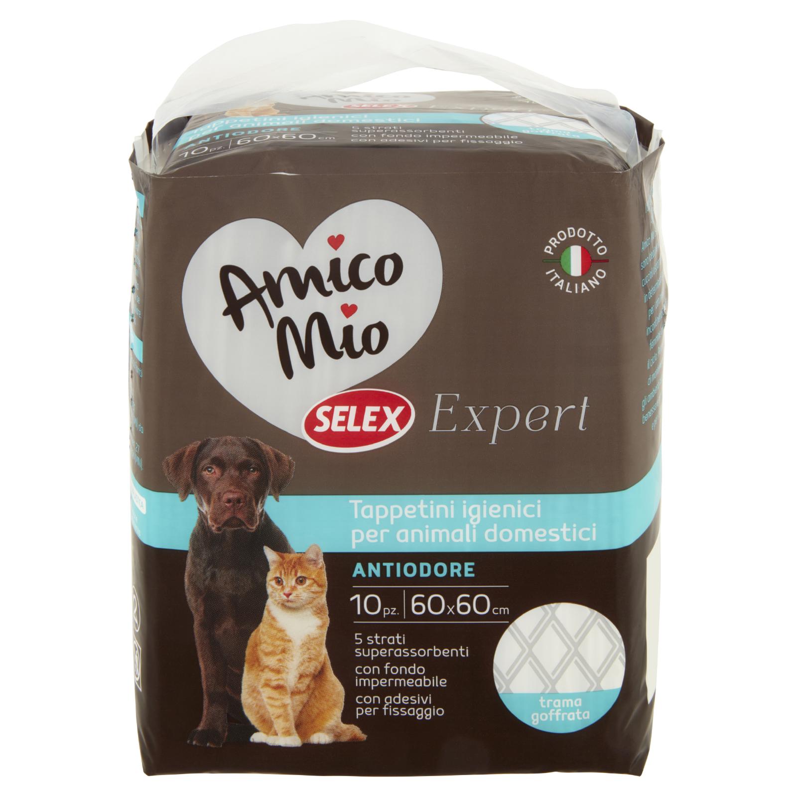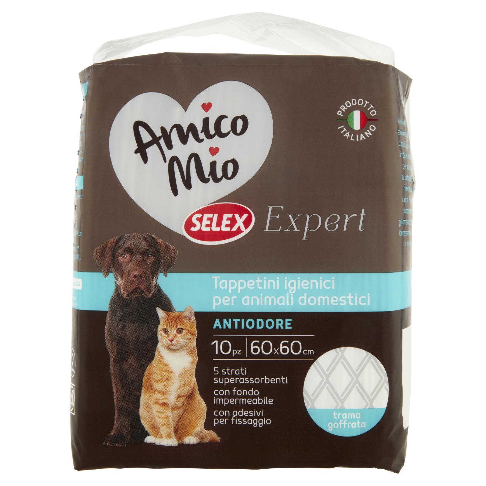 - I tappetini Igienici Antiodore Amico Mio Selex Expert sono ideali per educare i cuccioli a sporcare solo in determinati spazi, e per i cani malati o incontinenti o per le femmine durante il ciclo. Permettono di mantenere puliti gli ambienti assicurando benessere per l'animale e per l'uomo.